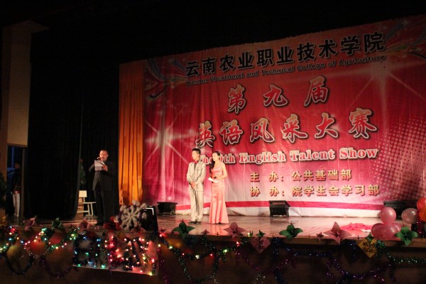 2013年12月12晚19:00,由公共基础部主办、院学生会学习部承办的学院“第九届英语风采大赛”在小哨校区大礼堂成功举行。出席本次大赛的领导有对外合作与交流处处长凌军、学生工作处处长周诚、园艺与园林工程系副主任沈帅以及公共基础部董玉洲主任、李憬副主任。