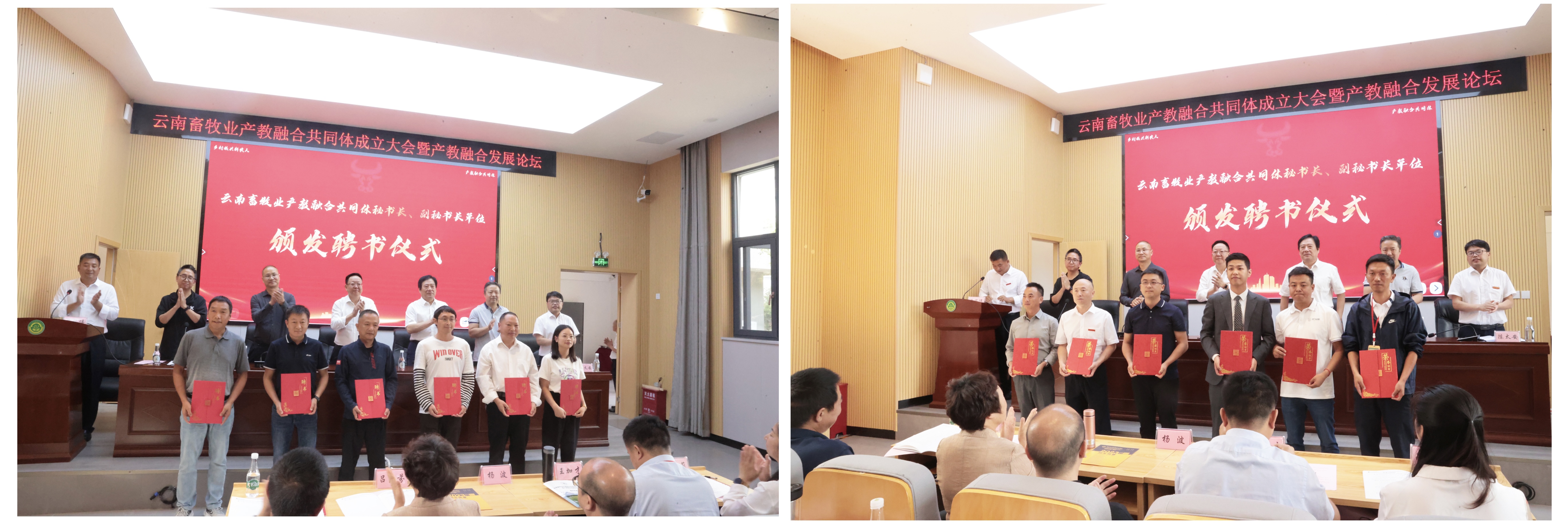 随后,大会举行云南畜牧业产教融合共同体理事长单位、副理事长单位、常务理事单位授牌;云南畜牧业产教融合共同体指导单位授证书;秘书长单位、副秘书长单位授证书。