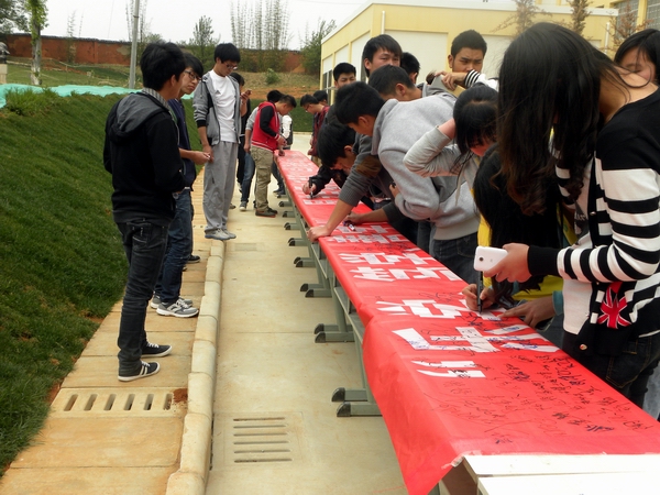 2014年为我院学风建设年,在此之际,园艺与园林工程系于2014年4月1日中午13:00在新办公楼后开展了全系学风建设签名活动。出席本次签名活动的有系党总支书记董文红老师、团总支书记何桥老师、辅导员赵瑾、彭苗、蔡东等老师及全系同学。