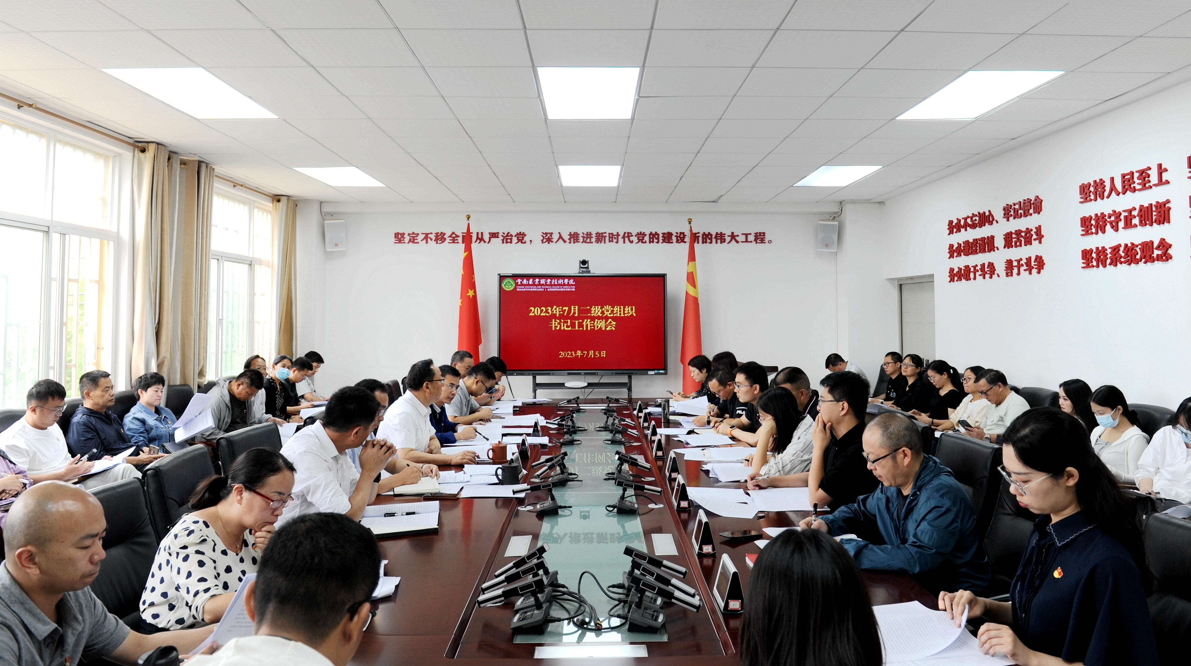 通知中心7月5日,学院党委在小哨校区四楼会议室组织召开了7月份二级党组织书记工作例会。会议由学院党委书记文俊主持。党委副书记伍学龙同志,各党总支部书记、党支部书记,办公室(党委巡察办)、纪检处、组织部、宣传部、团委、工会、妇联等部门主要负责人和有关工作人员参加会议。