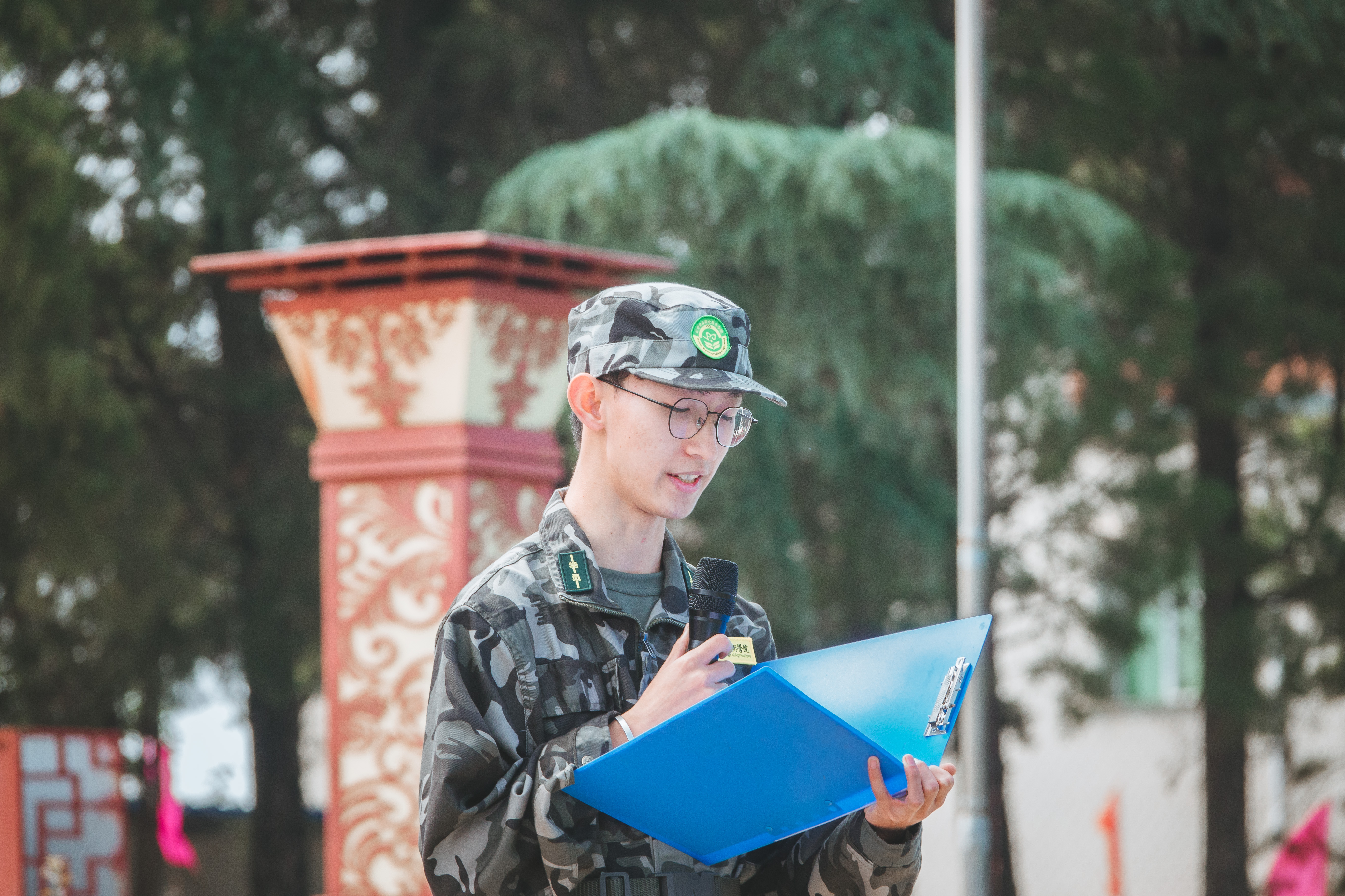 随后,云安产业学院教师李翔宇作教师代表发言。他首先向新同学表示欢迎,向教官表示感谢并致以敬意,并代表全体教师郑重承诺:坚持把立德树人作为教育的根本任务,努力让学生成为全面发展的社会主义建设者和接班人;同时鼓励同学们在把握方向中明确目标,在刻苦学习时勇于实践,在认识自我间迎接挑战。