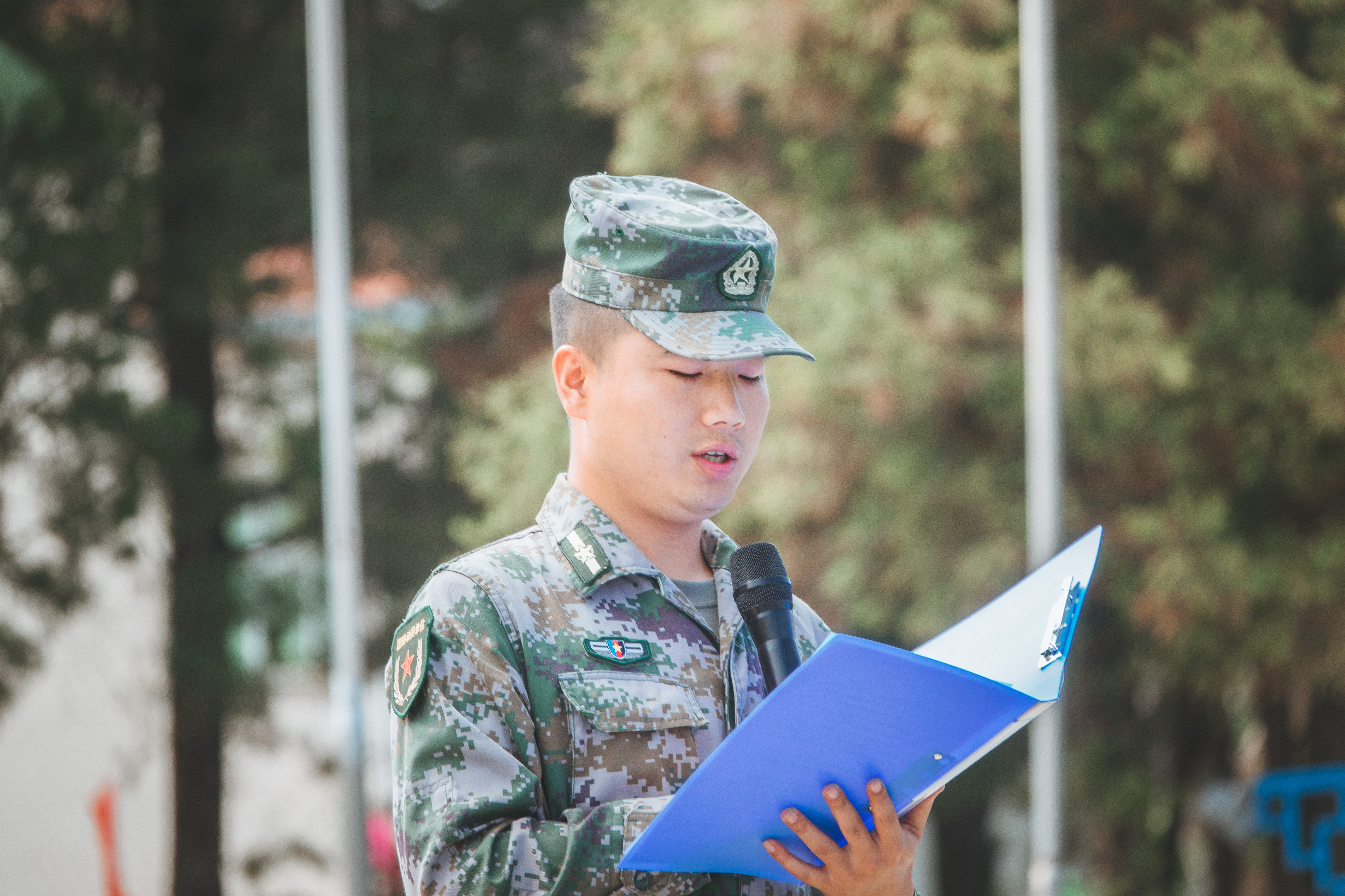 随后,互联网技术学院计算机网络技术专业的郭其谚同学作为新生代表发言。他表示,作为新生军训营的战士要努力磨练基本功,积极磨练意志力,将好习惯、好思想、好作风延续到未来的学习成长中。