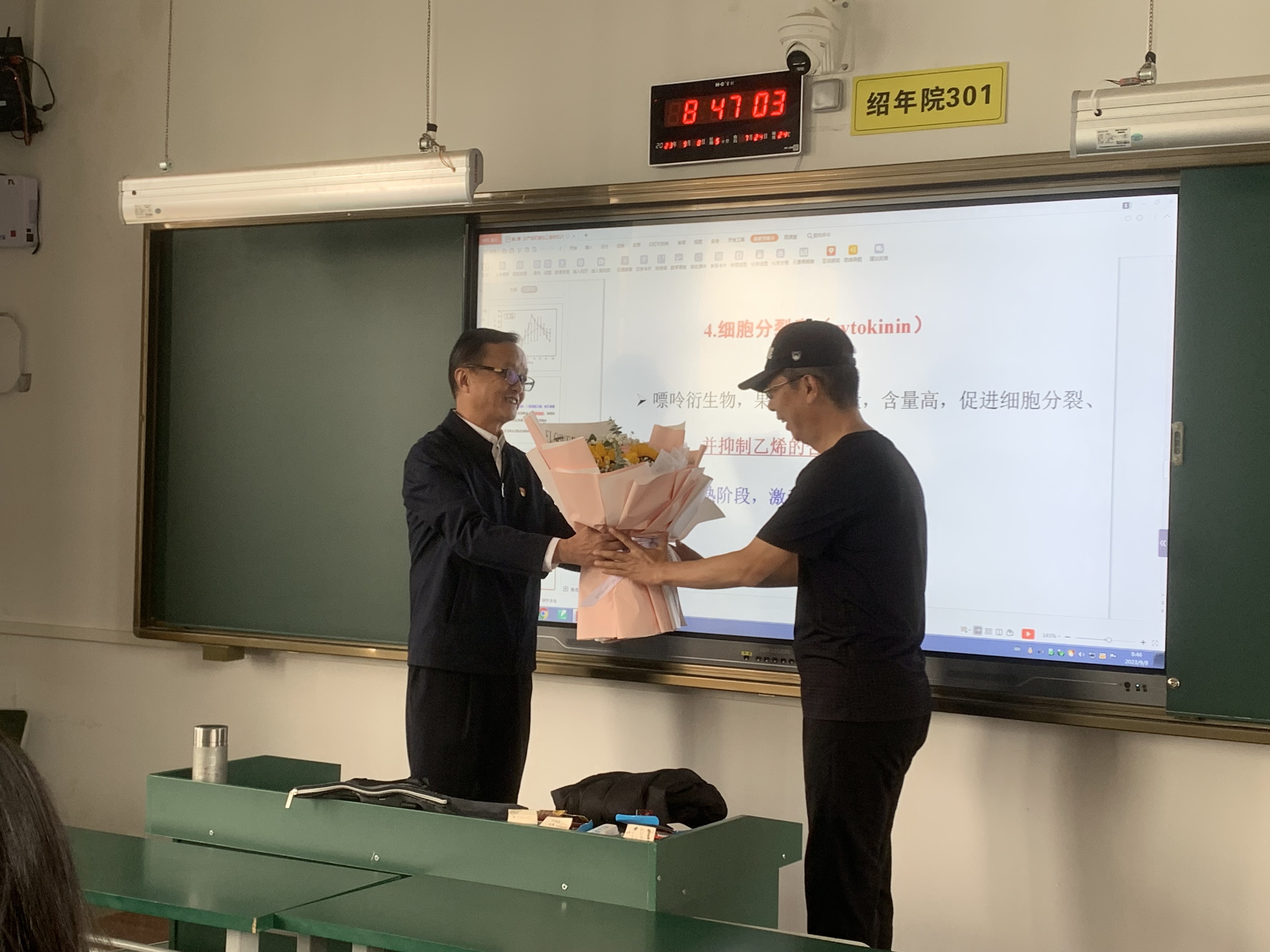 通知中心9月8日上午,在第39个教师节前夕,学院党委书记文俊和院长陈太安率部分党政班子成员深入小哨校区课堂,下沉教学一线,看望慰问工龄30年以上教师,送上鲜花和节日祝福,并通过他们向辛勤耕耘的广大教师致以诚挚的节日问候。学院领导衷心感谢躬耕教坛30年以上的教师,爱岗敬业、教书育人,为学院发展建设作出的重要贡献。