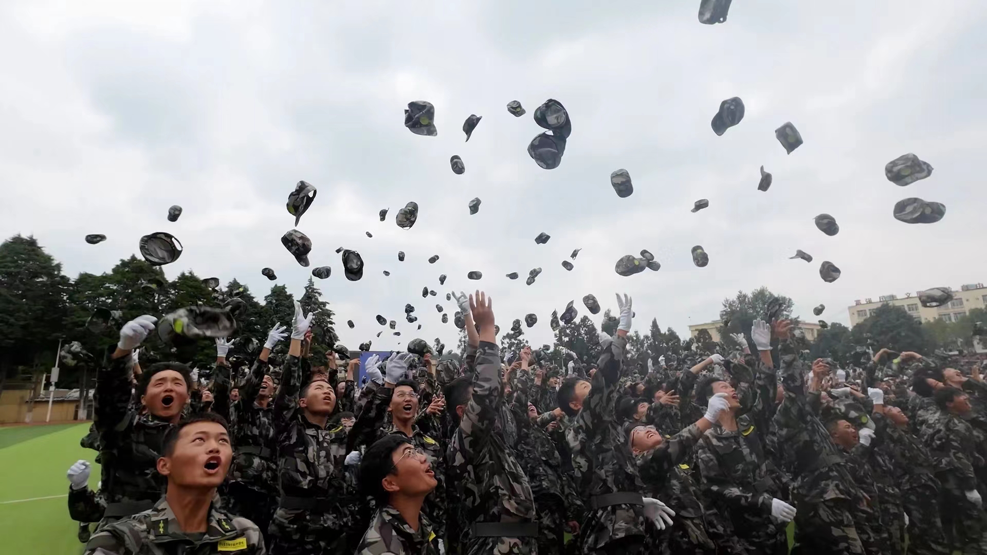 军训结束欢呼