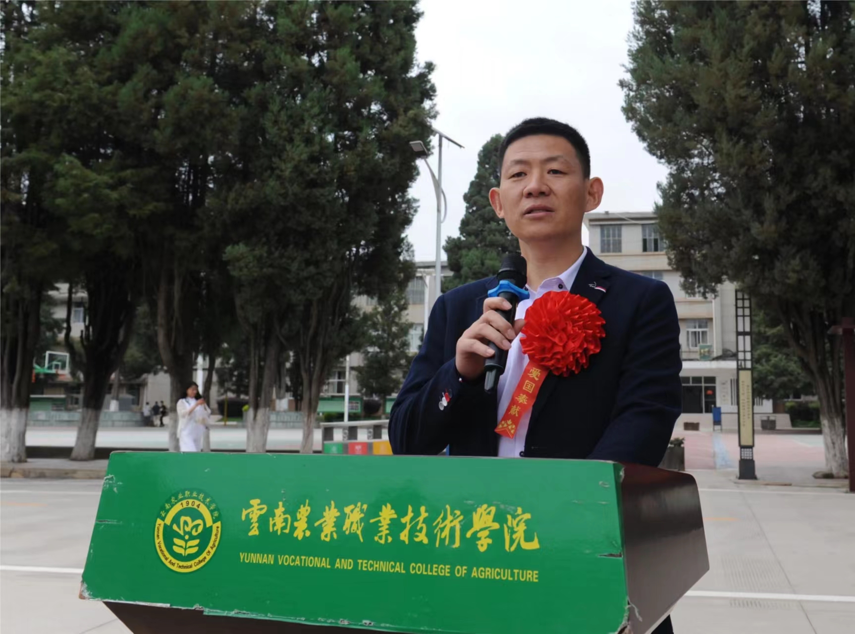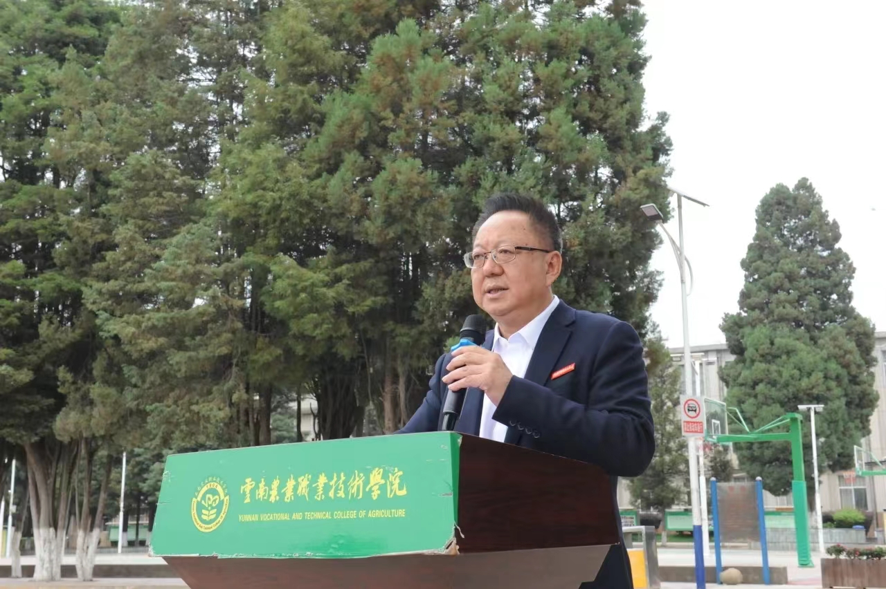 退转军人教师代表张新胜发言,发言中他跟大家分享了自己十多年的军旅生涯历程。他表示,来到具有历史文化底蕴和光荣传统的云农职是幸运的,战友们要牢记军队光荣传统,保持军人优良作风,在不同的工作岗位上尽职尽责。同学们要努力学习,不断提高自己的综合能力,大家的梦想将从云农职扬帆起航。