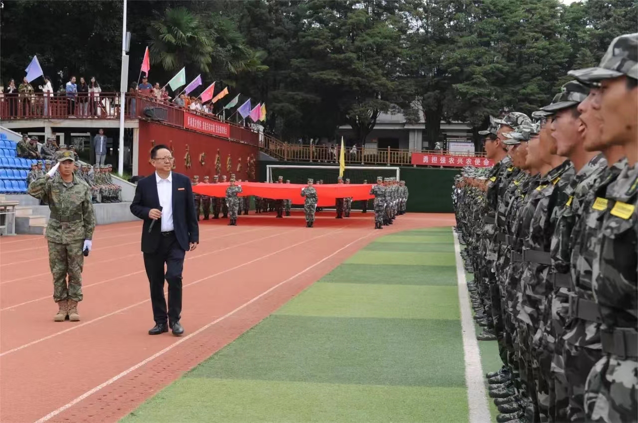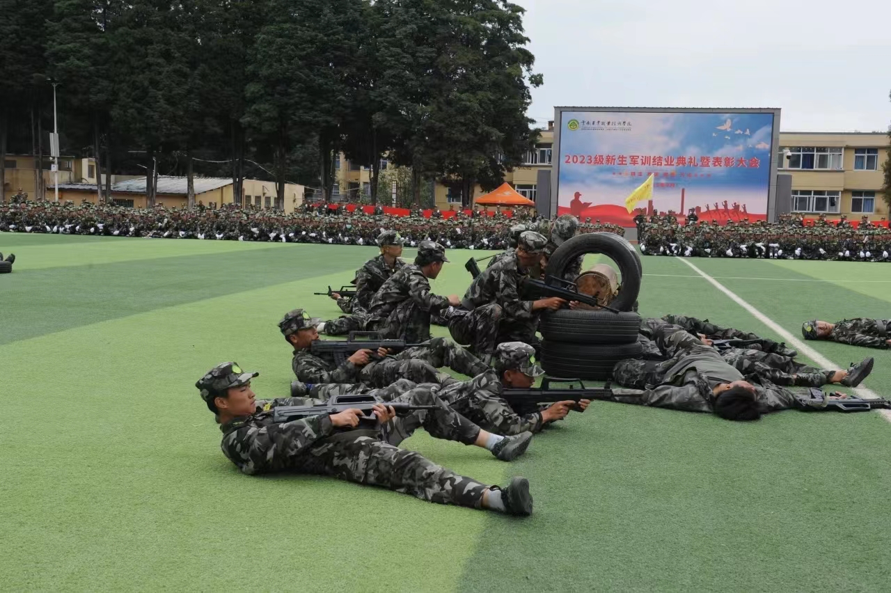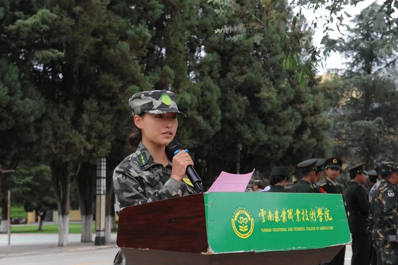 党委书记文俊发言,他代表学院对顺利完成军训任务的同学们表示亲切的慰问和热烈的祝贺!向昆明市五华区武装部全体承训教官以及驻训教师表示诚挚的感谢!并向同学们提出三点希望和要求:首先,希望同学们能够心怀梦想,志存高远。要始终牢记总书记的嘱托,坚定不移听党话、跟党走,怀抱梦想又脚踏实地,敢想敢为又善作善成,立志做有理想、敢担当、能吃苦、肯奋斗的新时代好青年;其次,希望同学们立德修身,自律自强。始终保持心有所畏、言有所戒、行有所止,学会艰苦奋斗、乐观向上、诚实守信、追求卓越,学会感恩、学会谦让、学会宽容、学会自律;最后,希望大家可以珍惜时光,勤奋学习。汲取营养,增长智慧和力量,从而获得改变自身命运、实现人生价值的素质与能力。