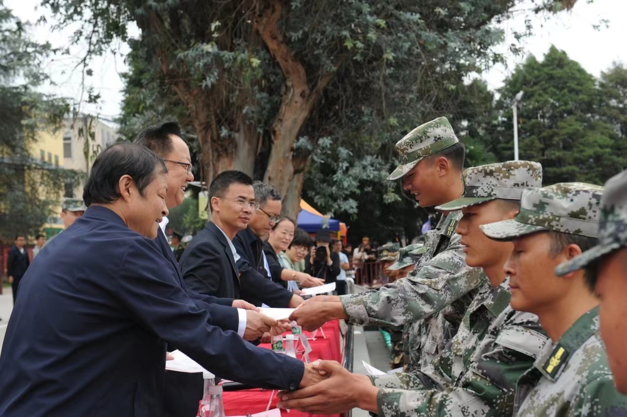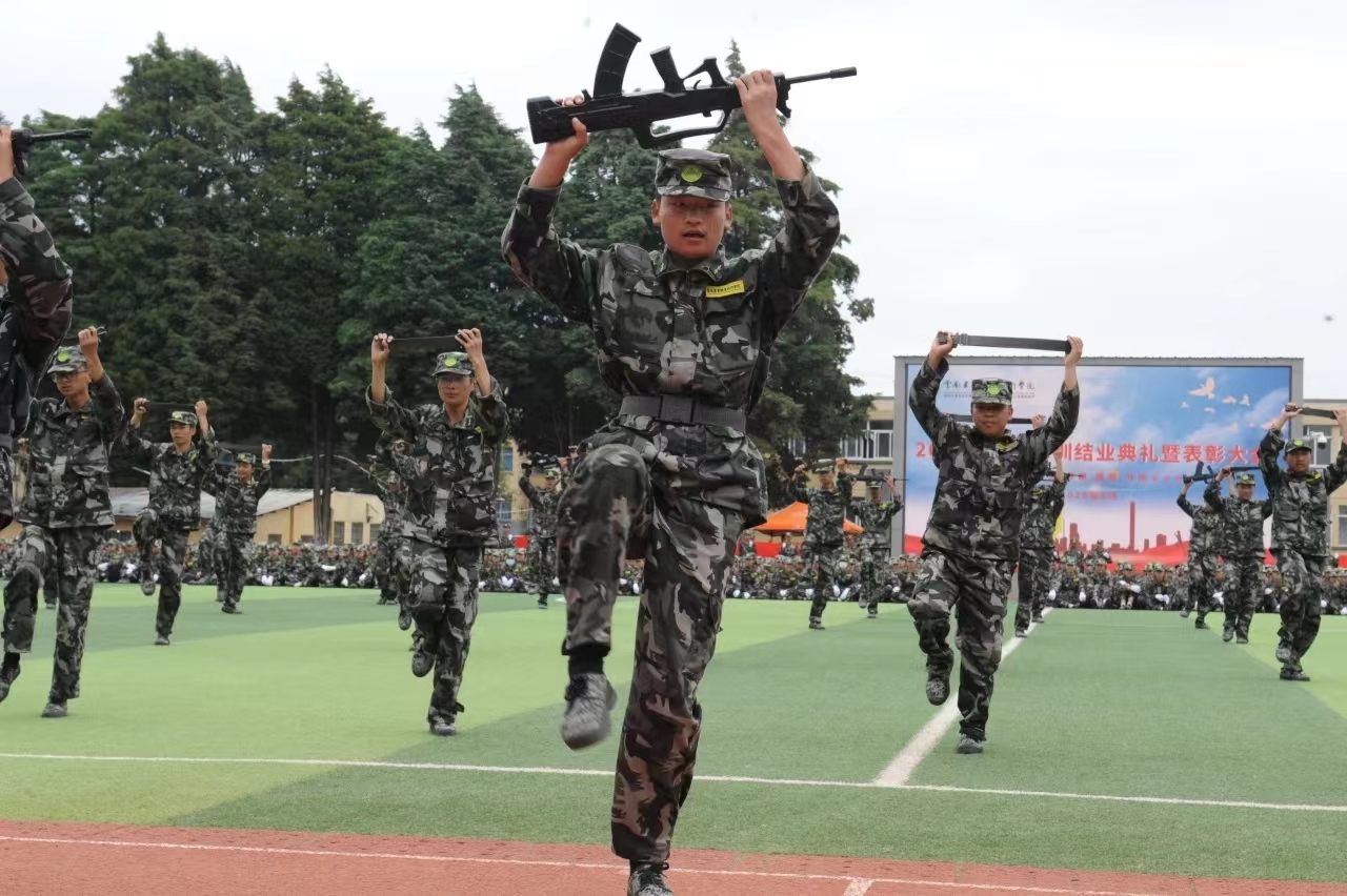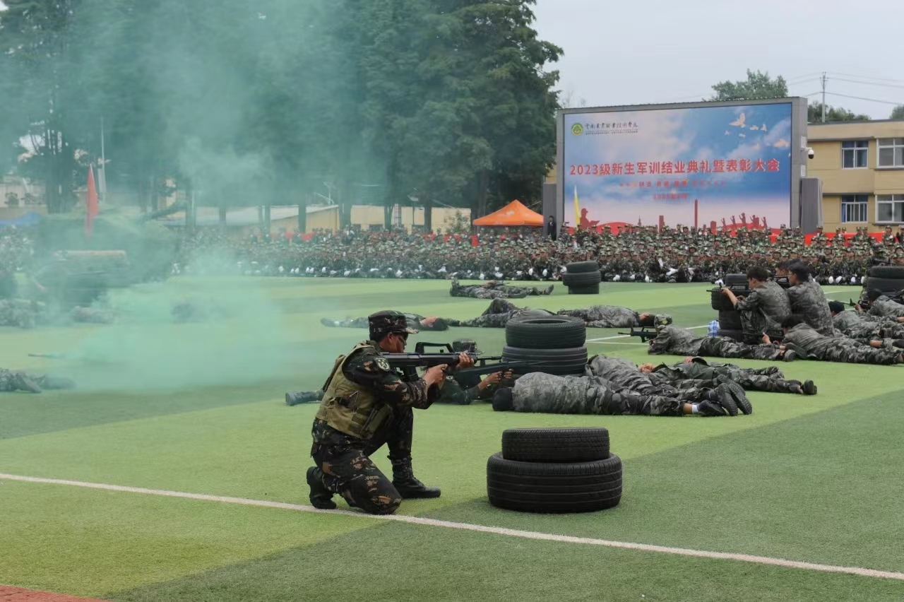 党委书记文俊发言,他代表学院对顺利完成军训任务的同学们表示亲切的慰问和热烈的祝贺!向昆明市五华区武装部全体承训教官以及驻训教师表示诚挚的感谢!并向同学们提出三点希望和要求:首先,希望同学们能够心怀梦想,志存高远。要始终牢记总书记的嘱托,坚定不移听党话、跟党走,怀抱梦想又脚踏实地,敢想敢为又善作善成,立志做有理想、敢担当、能吃苦、肯奋斗的新时代好青年;其次,希望同学们立德修身,自律自强。始终保持心有所畏、言有所戒、行有所止,学会艰苦奋斗、乐观向上、诚实守信、追求卓越,学会感恩、学会谦让、学会宽容、学会自律;最后,希望大家可以珍惜时光,勤奋学习。汲取营养,增长智慧和力量,从而获得改变自身命运、实现人生价值的素质与能力。