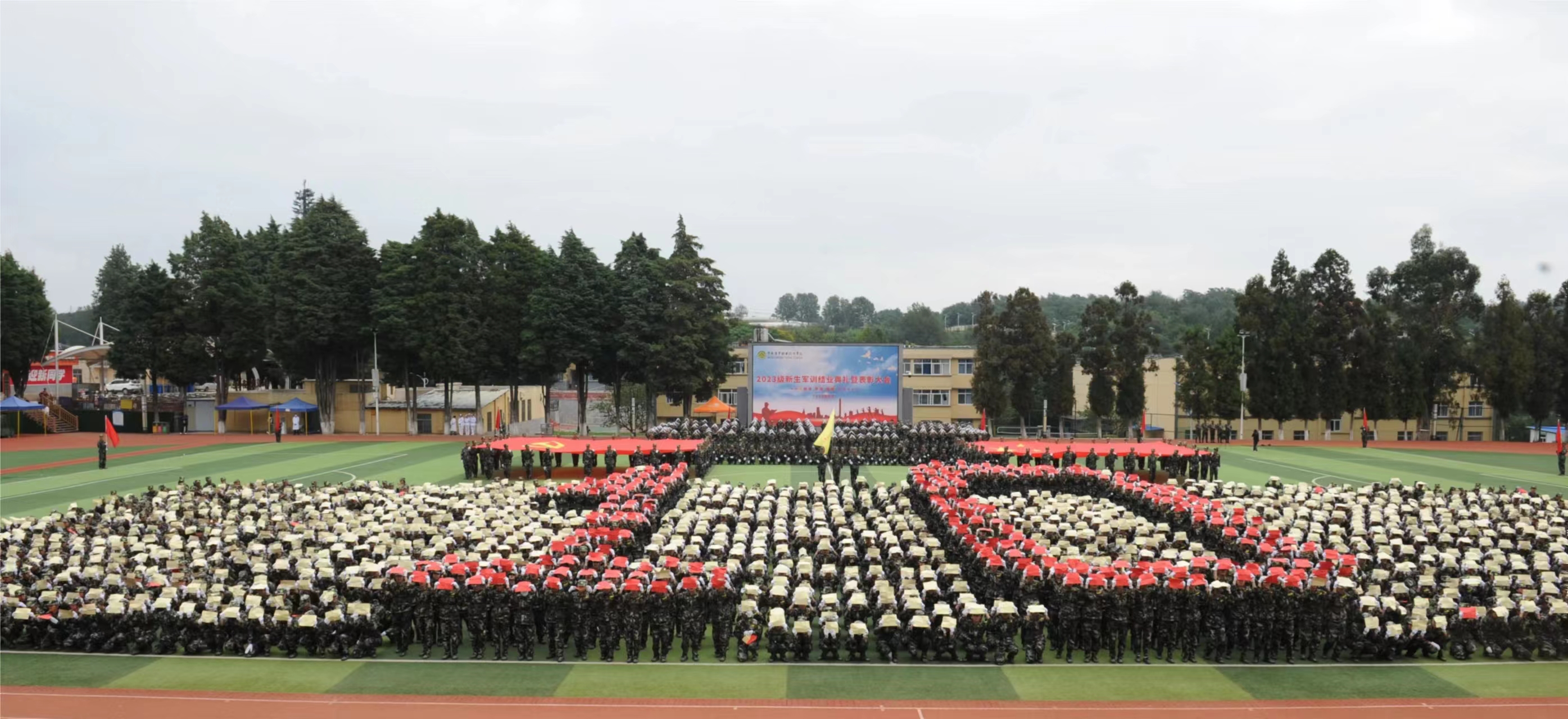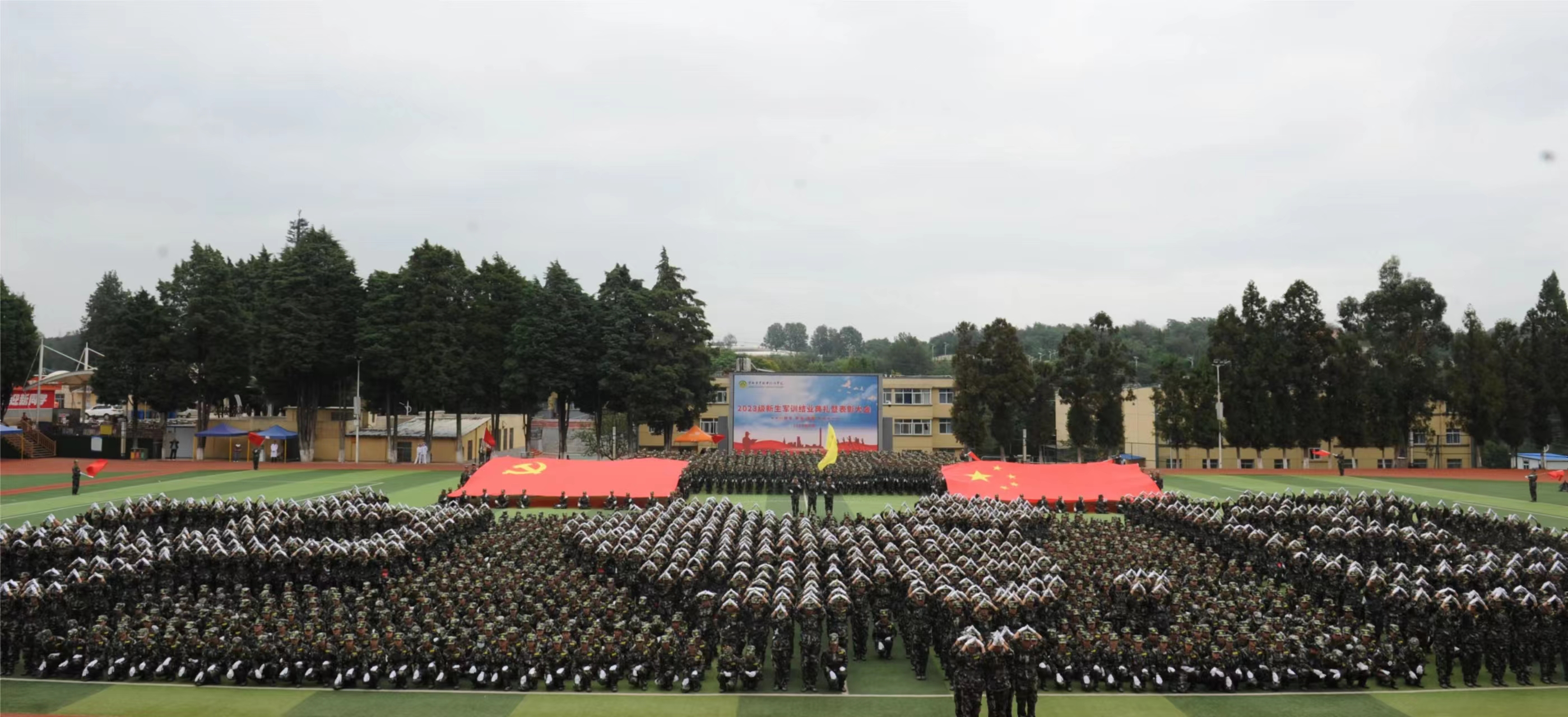 9月15日上午,beat365在线唯一官网2023级学生军训结业典礼暨表彰大会在小哨校区田径场举行。学院党政领导;各行政部门;小哨校区各二级学院领导;新生班班主任、辅导员;全体驻训教师等参加大会。大会由党委副书记伍学龙主持。在庄严肃穆的升旗仪式中,大会拉开了帷幕,参加本次军训的2023级新生方阵军容严整地接受了党委书记文俊的检阅。