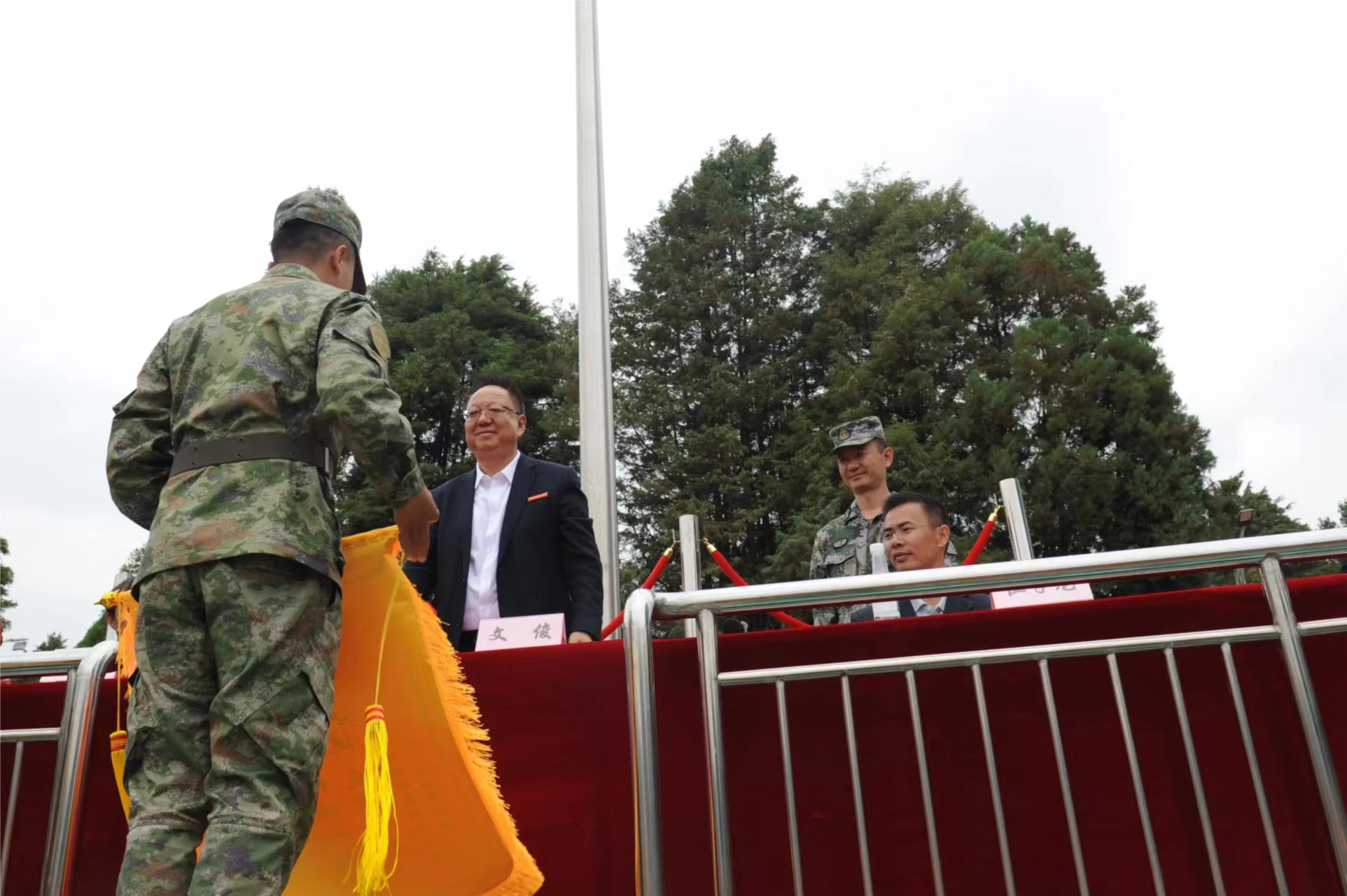 党委书记文俊向承训部队赠送锦旗