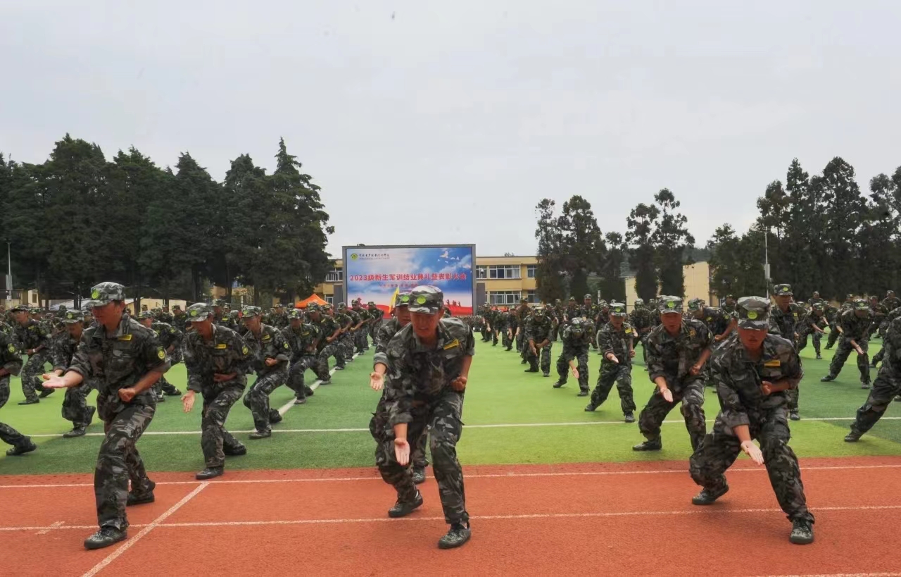 军训汇报表演开始了,“擒敌”致胜,“拳”释风采。巍巍军风,擒敌拳展现了农职学子的风采。巾帼风采匕首操表演,巾帼不让须眉在她们挺拔的身姿,统一的步伐中体现得淋漓尽致。刺杀操共有十六动,同学们动作利落、气势凛凛,一令一动锤炼扎实作风,一招一式尽显军人本色。韵律操表演中,立正、稍息、跨立、蹲下、起立、脱帽戴帽、敬礼礼毕、停止间转法等基本动作不停转换,她们把军训中所学到的精髓表演得淋漓尽致。战术方队的表演动作矫健、配合默契、设计新颖、注重实战,为军训结业典礼带来别样的观感。有趣的摆字表演,令行禁止,尽展风采。