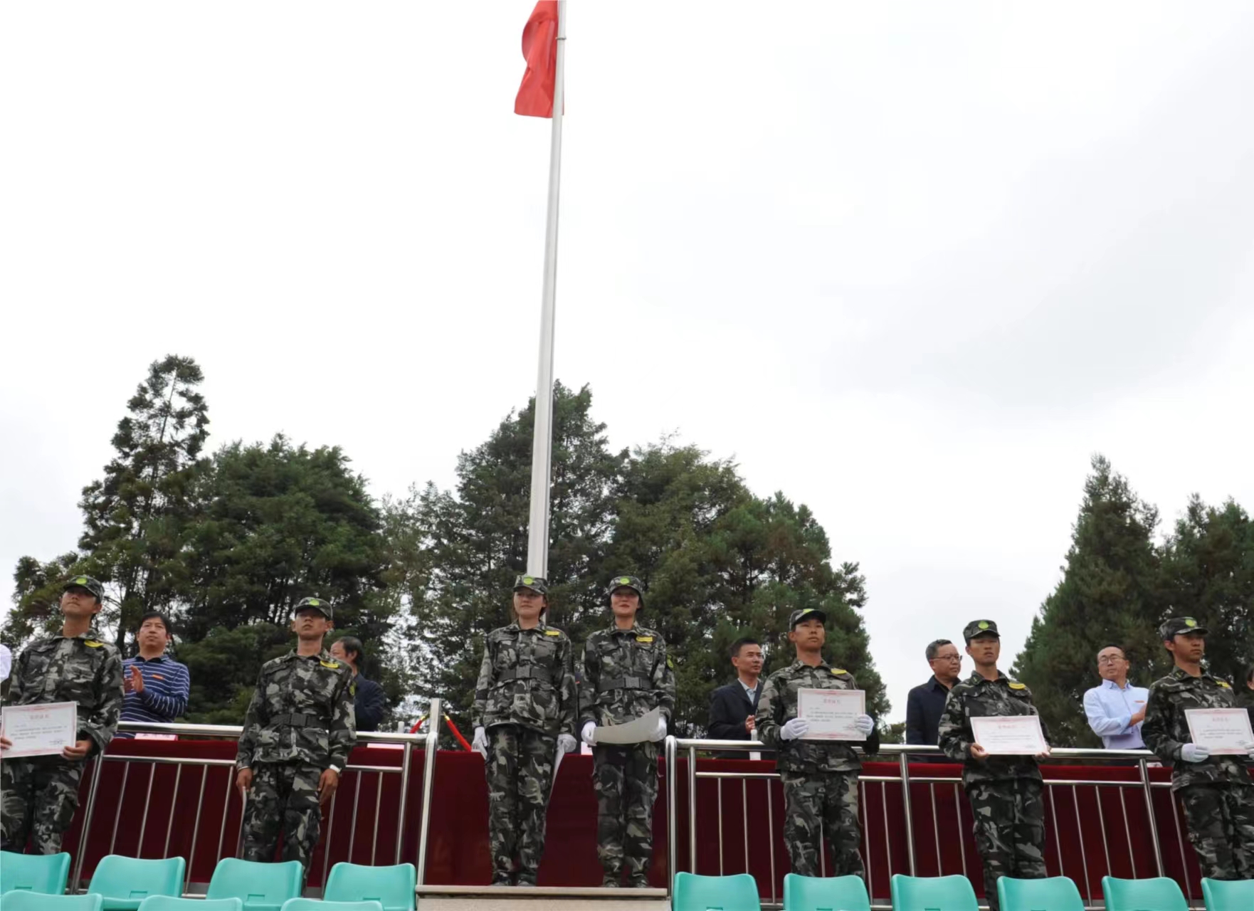 在这15天里,涌现出了大批优秀刻苦的教官、老师和学员,为表彰先进,决定对“优秀连队”、“优秀教官”、“优秀学员”、“优秀驻训教师进行表彰颁奖。党委书记文俊向承训部队赠送锦旗。