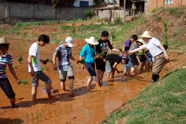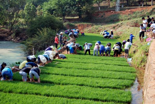 通知中心园林园艺学院开展插秧活动