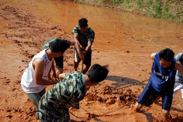 同学们对水田进行平整