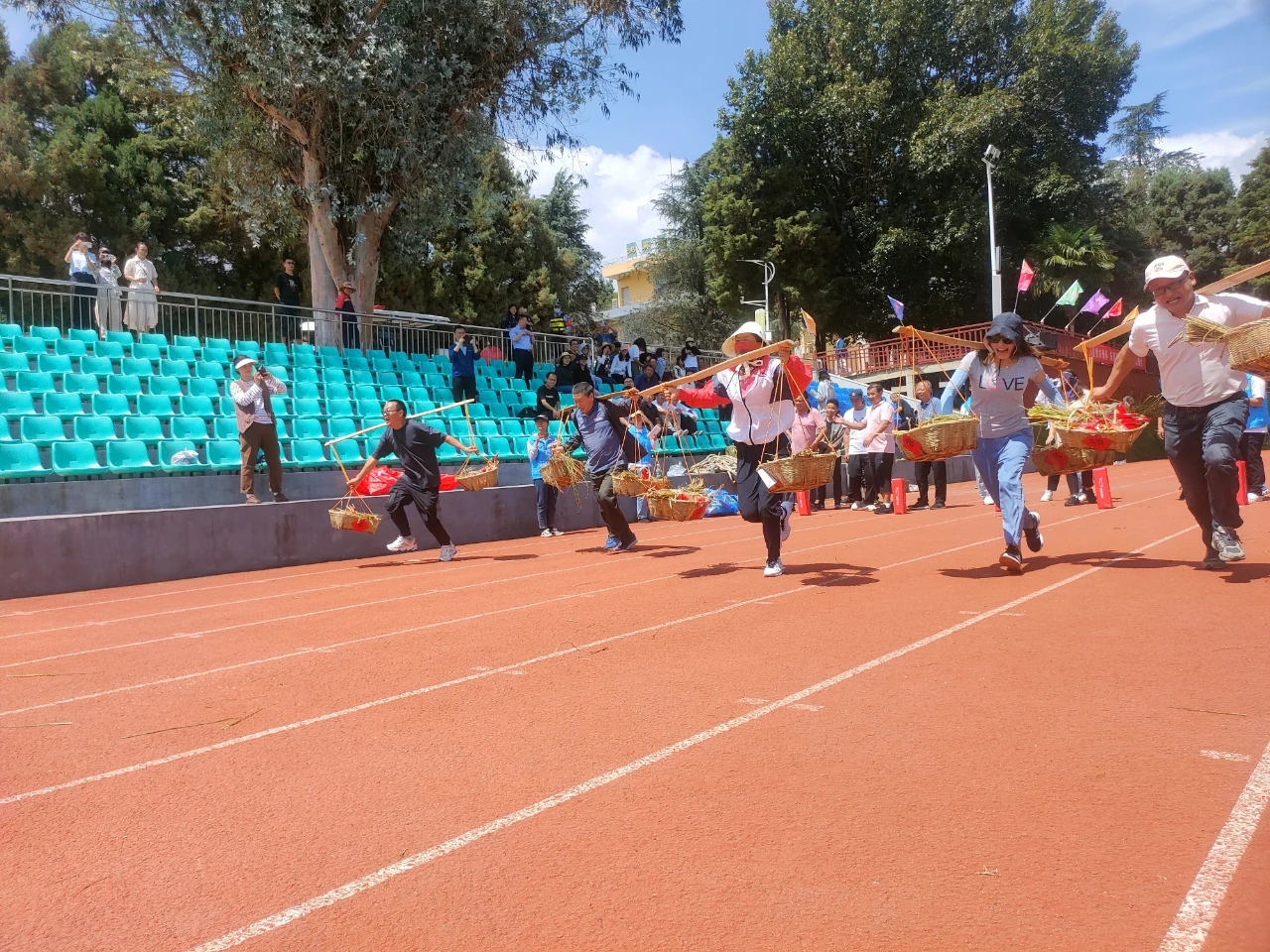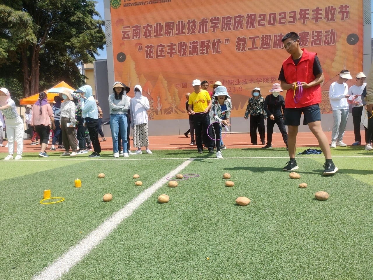伴随着一曲纳西三步曲,活动正式拉开帷幕,老师手拉手、心连心,跳起欢快的舞蹈,一筐筐粮食在大家肩上晃动,一个个圈环从大家手中抛出,老师们争分夺秒,现场呐喊声、欢笑声不绝于耳。一个个奔跑的身影、一个个专注的神情,展现出学院教职工同心同德,共创未来的精神风貌,激发了学院发展的新活力。共有32支队伍320余人参与此次活动。