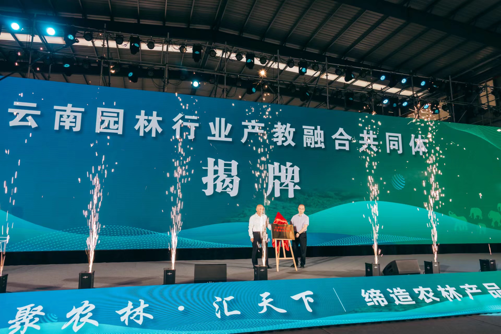随后大会举行了云南园林行业产教融合共同体揭牌仪式,杨波副院长与苏国辉董事长一同为共同体揭牌,标志着云南园林行业产教融合共同体的正式成立。