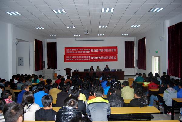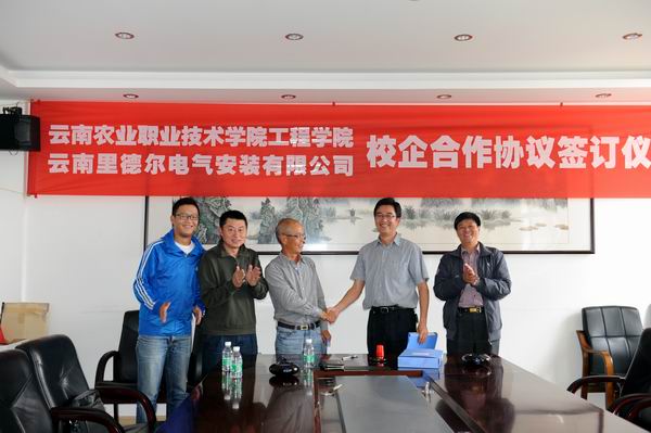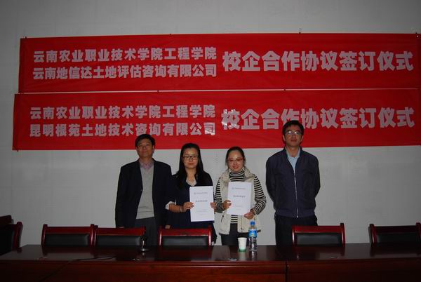 201410111013,工程学院分别与云南里德尔电器安装有限公司、云南地信达土地评估咨询有限公司、昆明根苑土地技术咨询有限公司等三家实力雄厚的工程类企业签订校企合作协议,实现工程学院自818成立以来校企合作零的突破,为2015届毕业生搭建起良好的实习实训平台。工程学院李一源院长代表学院分别与三家企业在合作协议上签字,党总支书记蔡永生、教务处副处长李石友、办公室主任余水出席签字仪式。