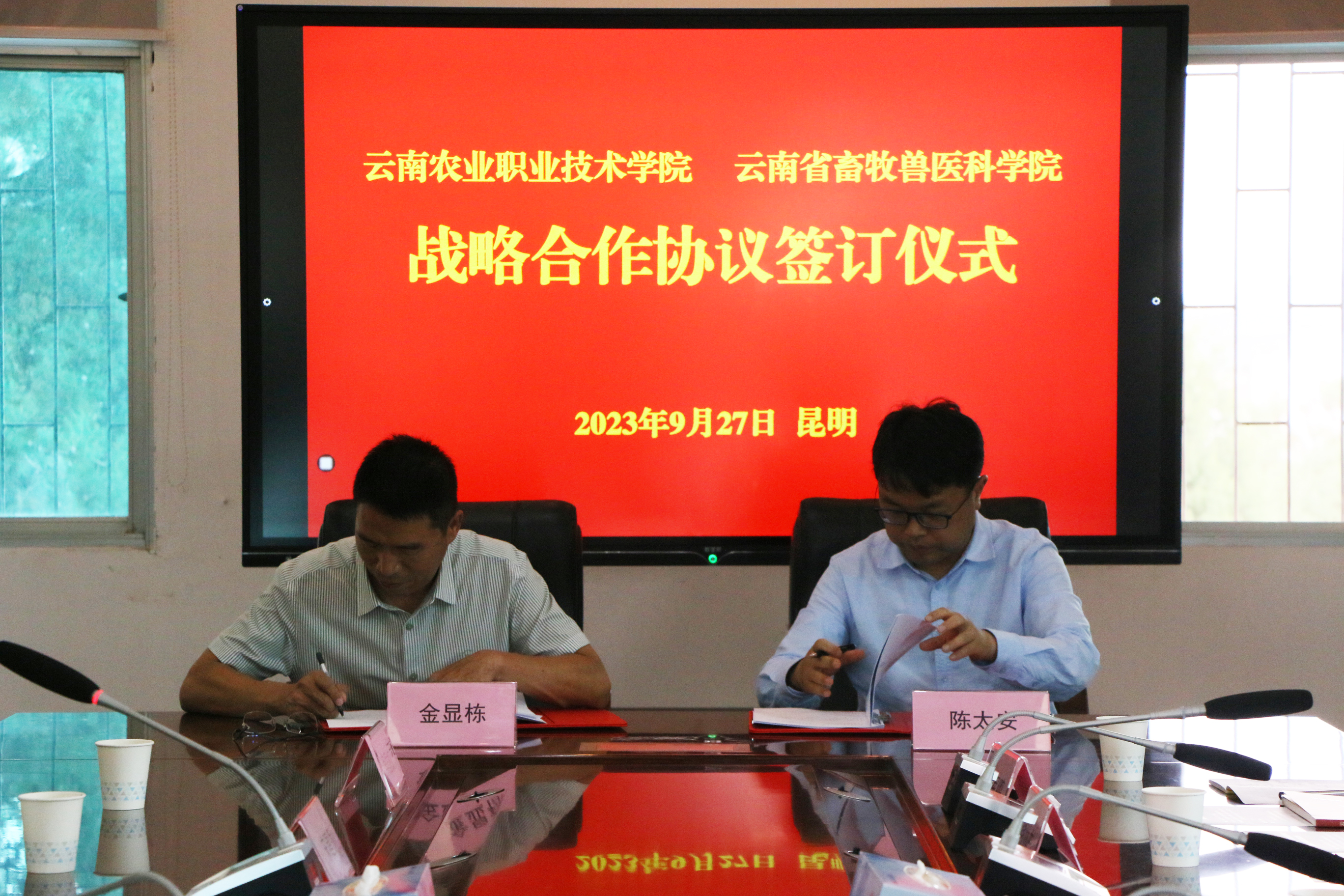 签订仪式后,在金显栋院长的带领下,与会人员实地参观考察了云南省畜牧兽医科学院的科研基地。(办公室供稿/文、图:刘贵贤/一审:李石友;二审:唐丽群;三审:杨筱莹/一校:刘贵贤;二校:李石友;三校:唐丽群 /责任编辑:唐丽群)