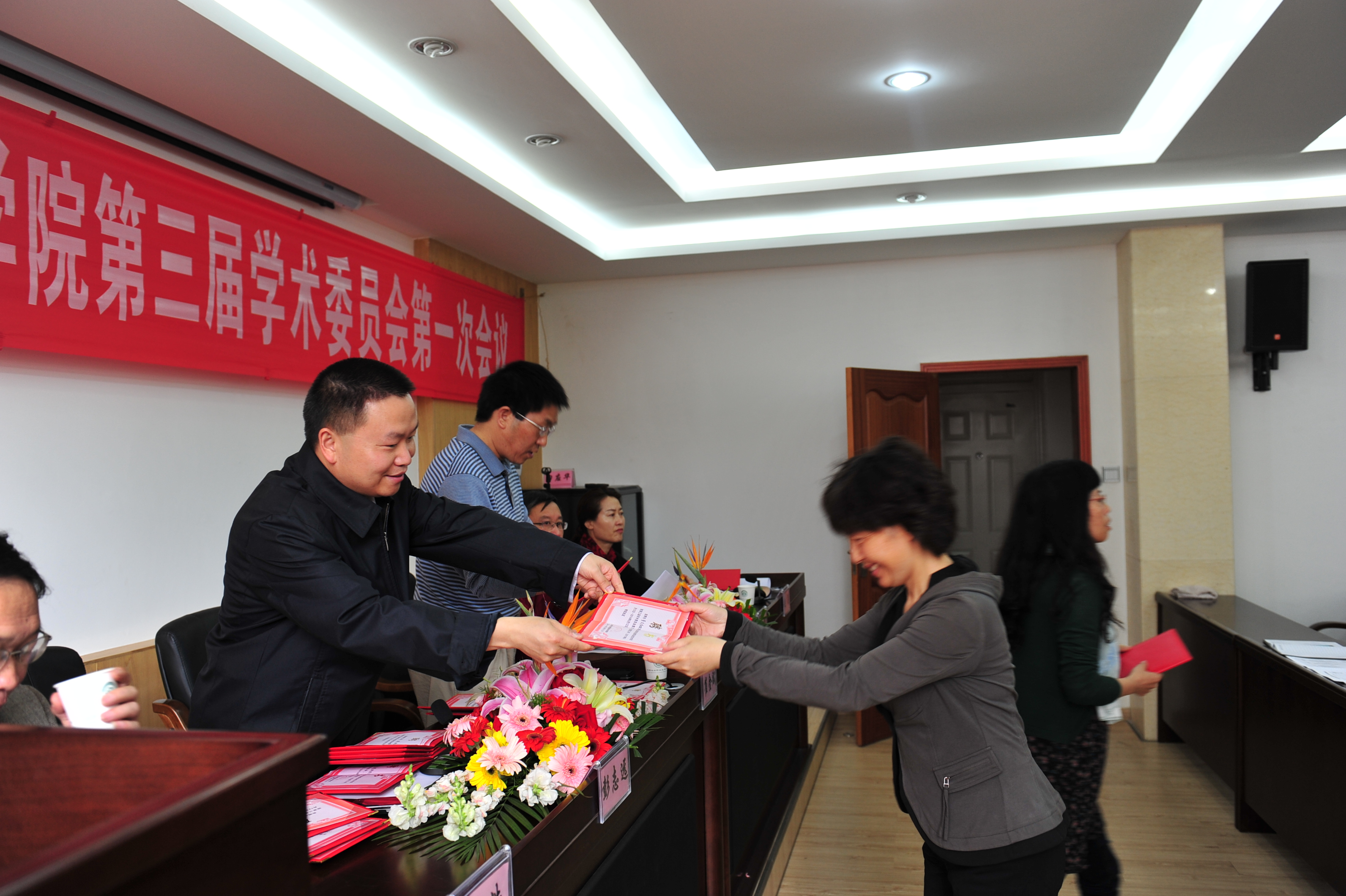 随后,学术委员会主任委员崔金赋书记、彭志远院长为第三届学术委员会委员颁发聘书。