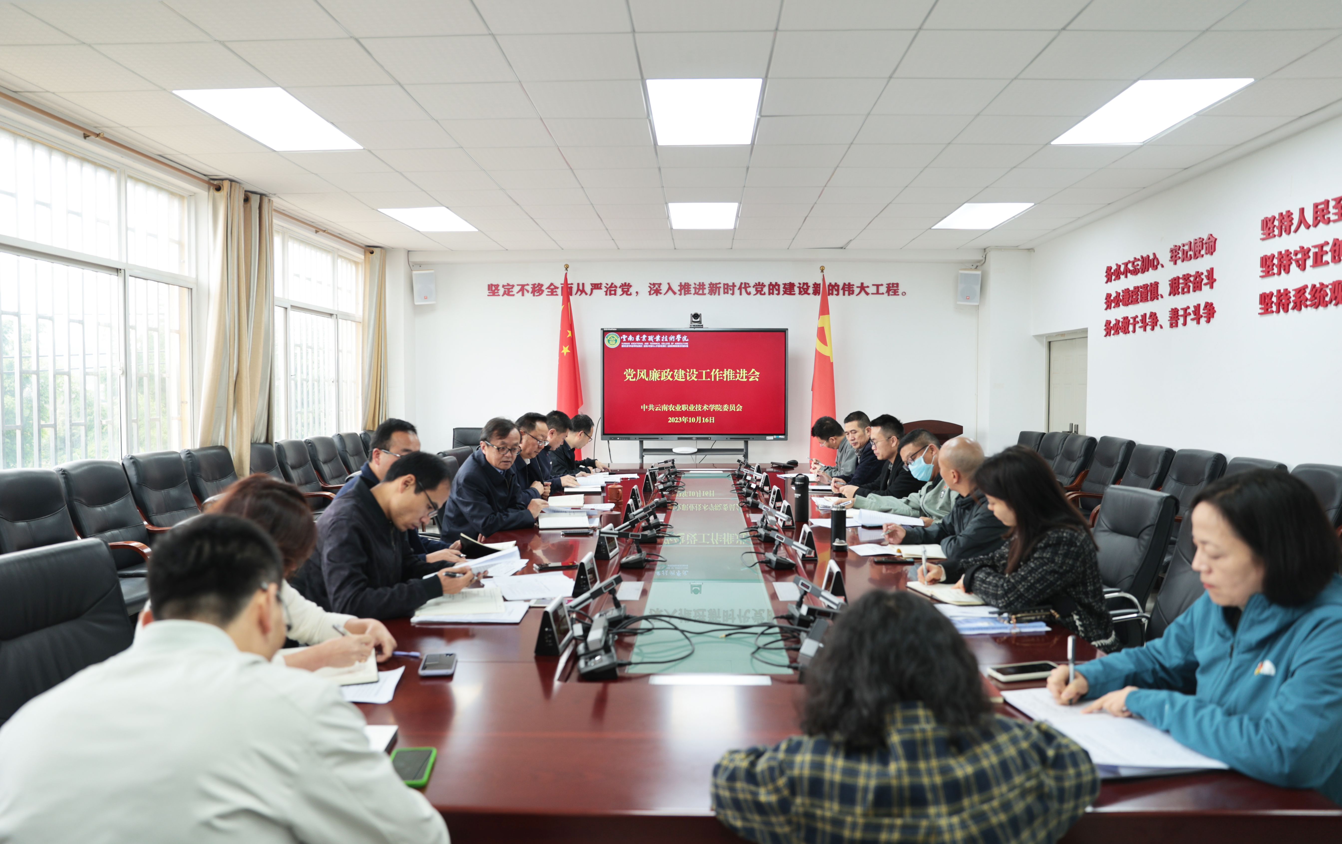 通知中心为贯彻落实党的二十大精神,深入推进党风廉政建设和“清廉农职”建设工作部署落实落细,10月16日上午,学院党委在小哨校区综合楼四楼会议室组织召开党风廉政建设工作推进会暨“清廉农职”建设监督检查工作部署会议,党委书记文俊、纪委书记冯志宏及11个相关职能部门负责人参加会议。