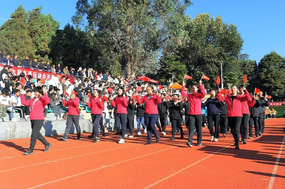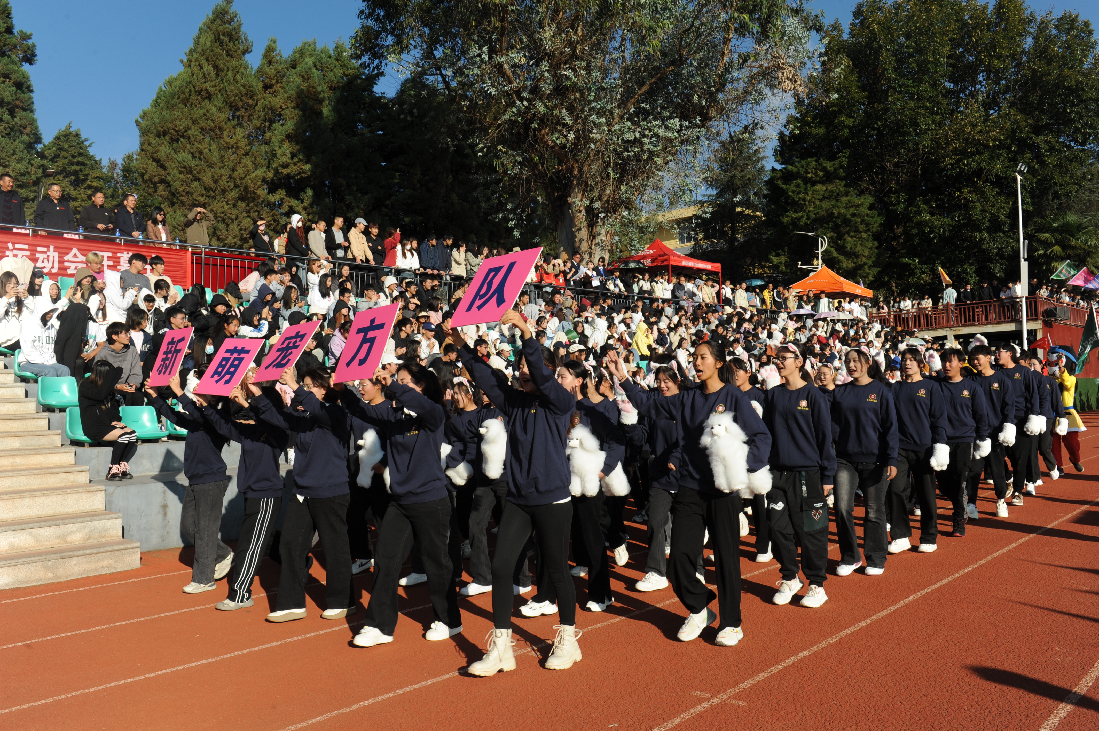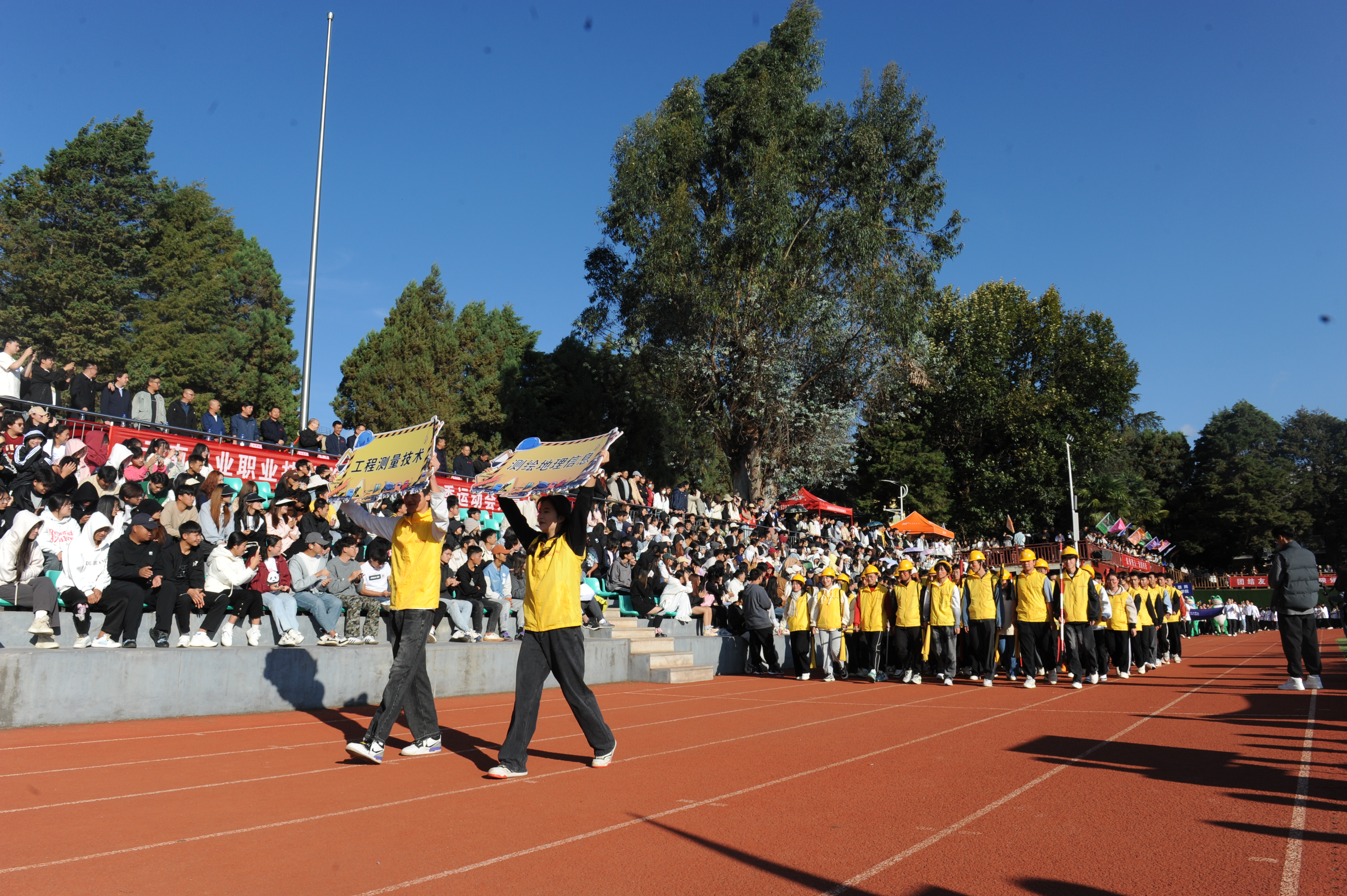 校旗仪仗队、校训方队、彩旗方队、教工方队、裁判员代表队、各二级学院运动员代表队等各成方阵,他们以饱满的热情,昂扬的姿态,有序进入会场。