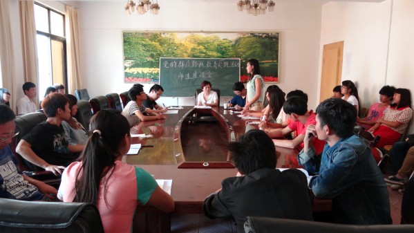 2013年9月18日中午12:30,系党总支在教学楼四楼会议室召开学生座谈会,听取学生对学院和系部发展的意见和建议。