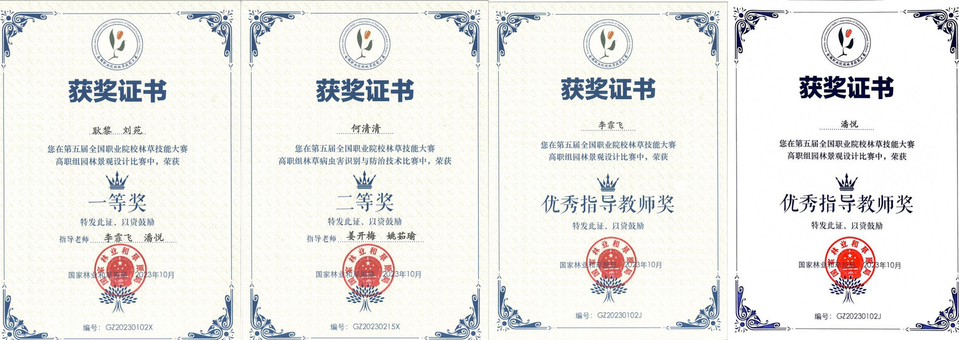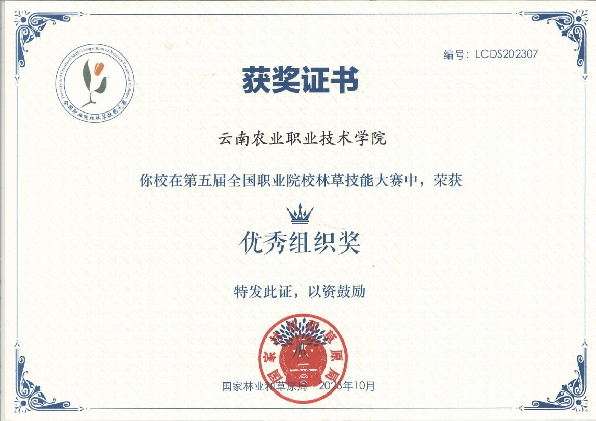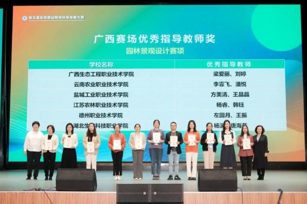 经过激烈角逐,由beat365官网农学与园艺技术学院李霏飞、潘悦两位教师指导的风景园林设计专业学生耿黎、刘苑荣获“园林景观设计”赛项一等奖;姜开梅、姚茹瑜两位教师指导的园林技术专业学生何清清荣获“林草病虫害识别与防治技术”赛项二等奖。同时,指导教师李霏飞、潘悦获“优秀指导教师奖”;beat365官网荣获“优秀组织奖”表彰。