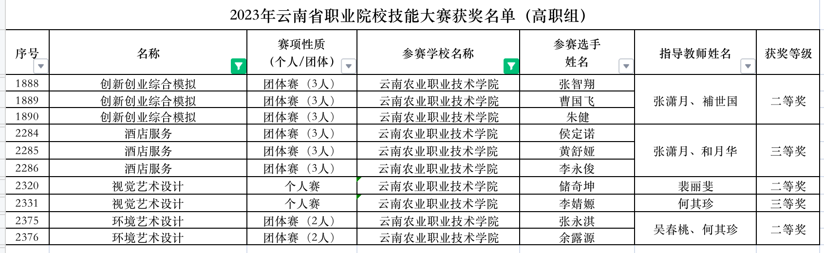 2023年云南省职业院校技能大赛云安产业学院获奖名单