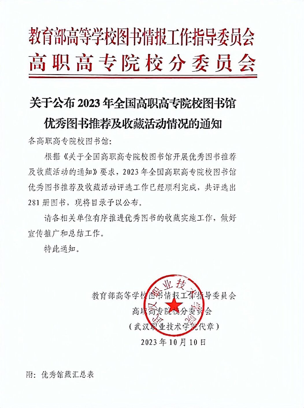 通知中心近日,经2023年全国高职高专院校图书馆优秀图书推荐及收藏活动评选,我院赵燕教授主编的《草坪建植与养护》(中国农业大学出版社)和杨文涛教授主编的《中国传统文化》(中国言实出版社)两种图书入选全国高职高专院校图书馆优秀馆藏图书。这是对我院教学水平的肯定和推荐,更是对我院教师辛勤工作的褒奖。