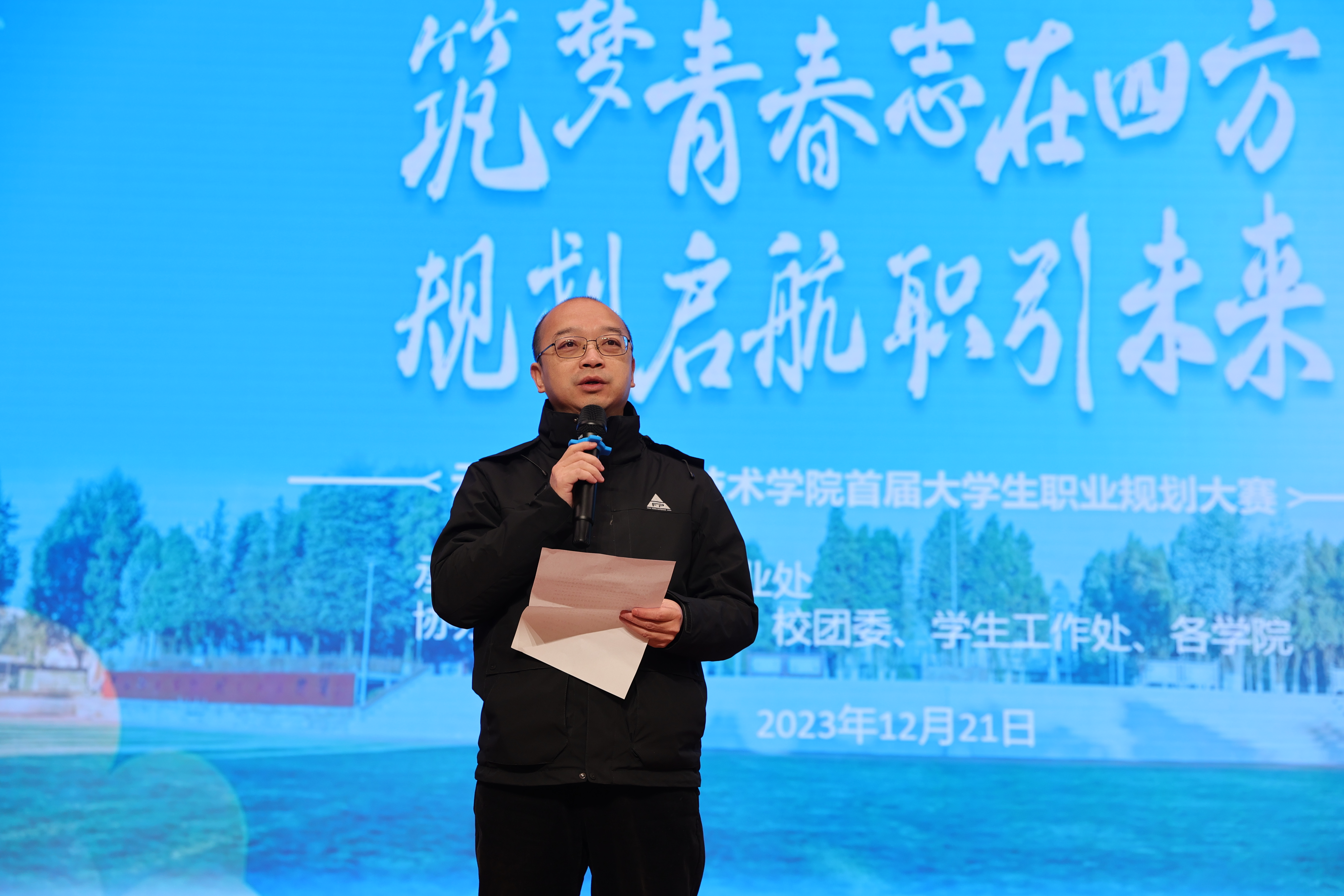 学院首届职业生涯规划大赛,经各二级学院院赛、校赛复赛等环节,选拔了成长赛道和就业赛道各12名同学,于12月21日在小哨校区蚕桑礼堂成功举办决赛。学院党委委员、副院长杨波出席开幕式并致辞,12家校企合作企业负责人应邀担任大赛评委,来自各二级学院的500余名同学现场观摩学习。