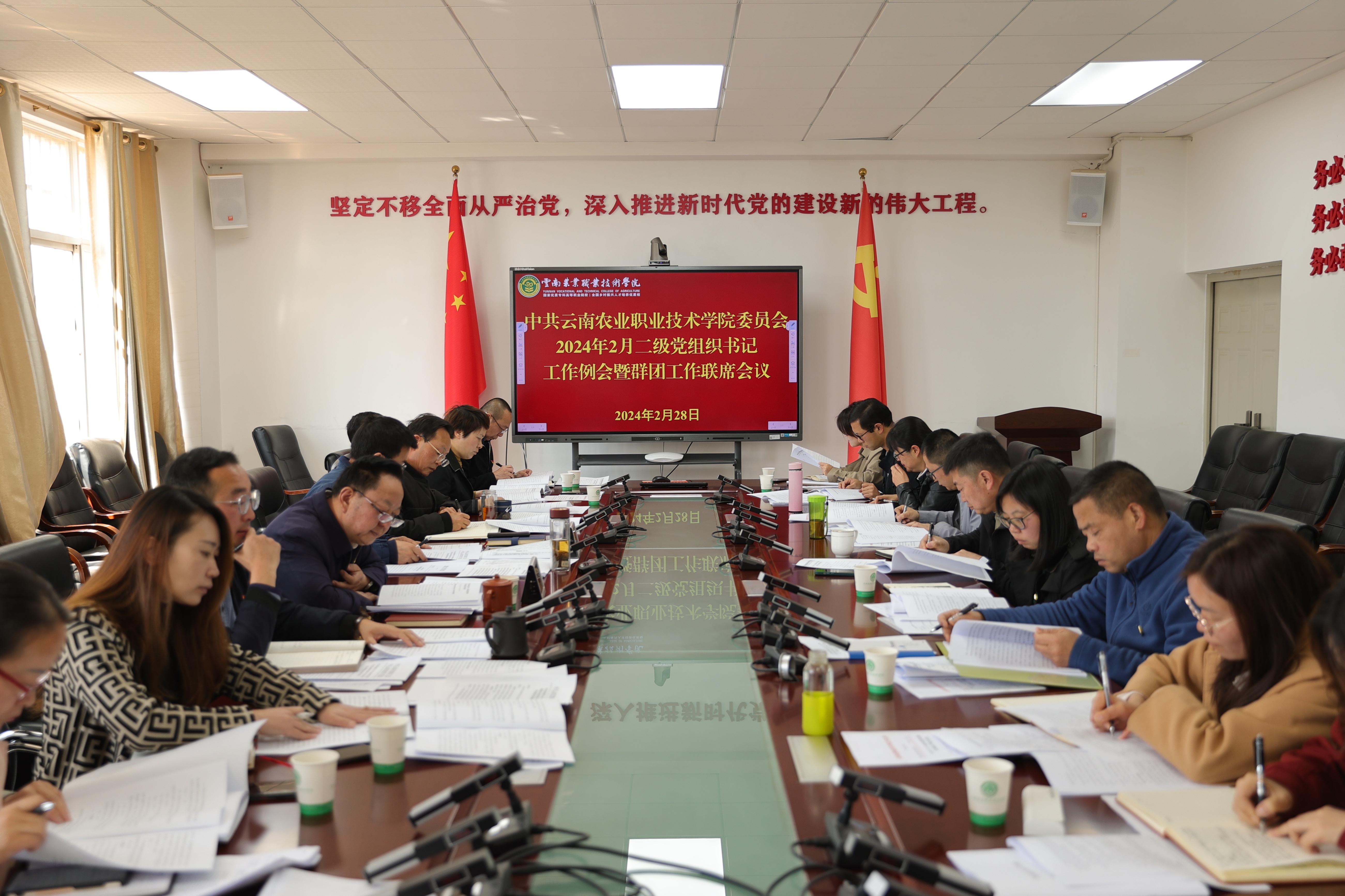 通知中心2月28日,在小哨校区四楼会议室,学院党委组织召开了2月二级党组织书记工作例会暨群团工作联席会议。会议由学院党委书记文俊主持。党委副书记伍学龙同志,各二级党组织书记、各党支部书记,办公室(党委巡察办)、纪检处、组织部、宣传部、团委、工会、妇联等部门主要负责人和有关工作人员参加会议。