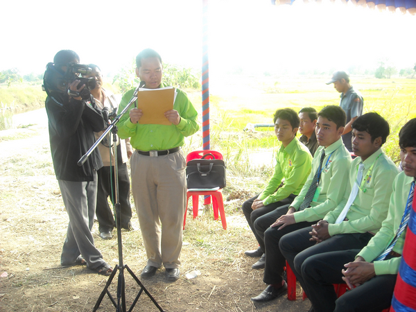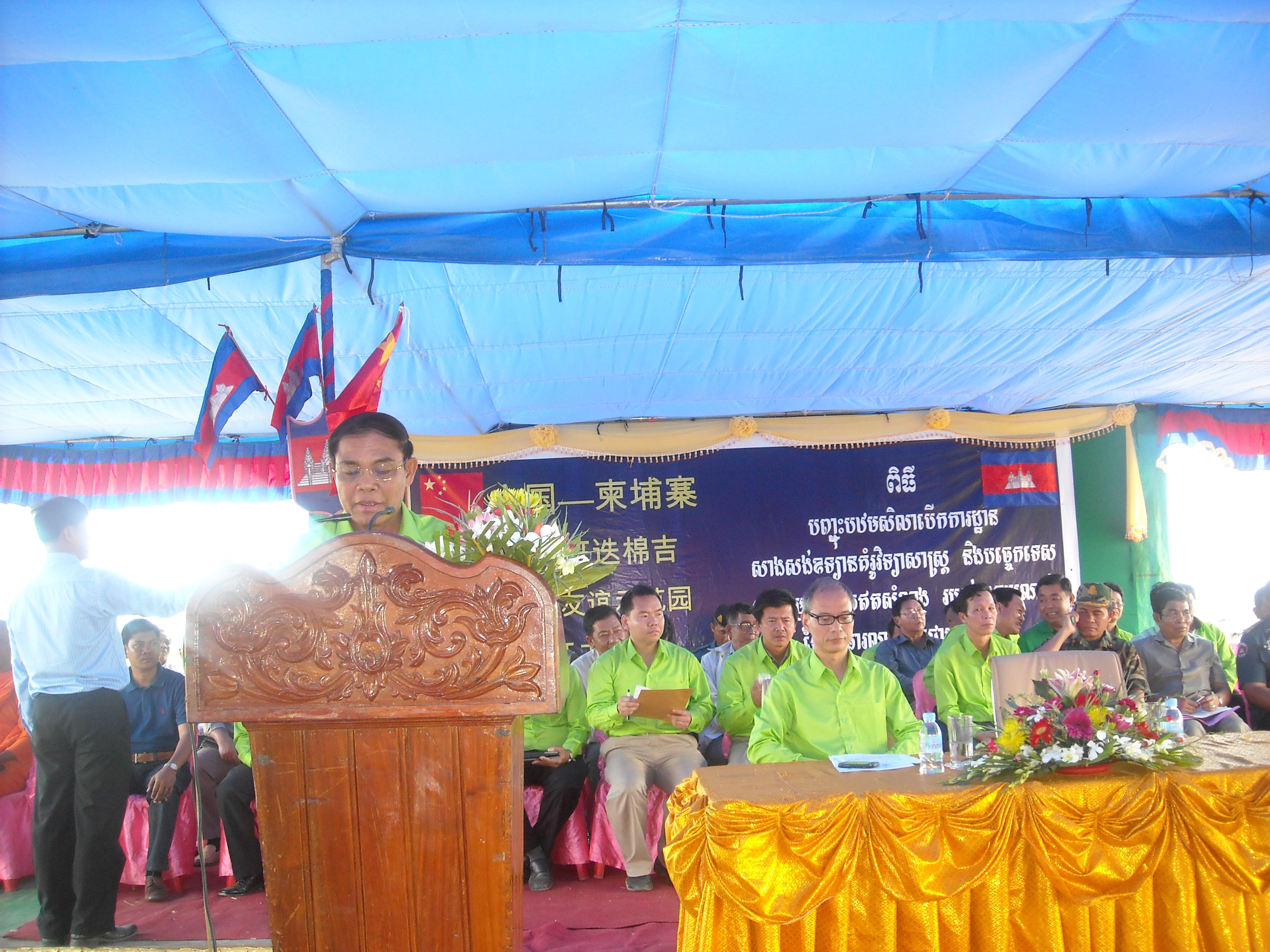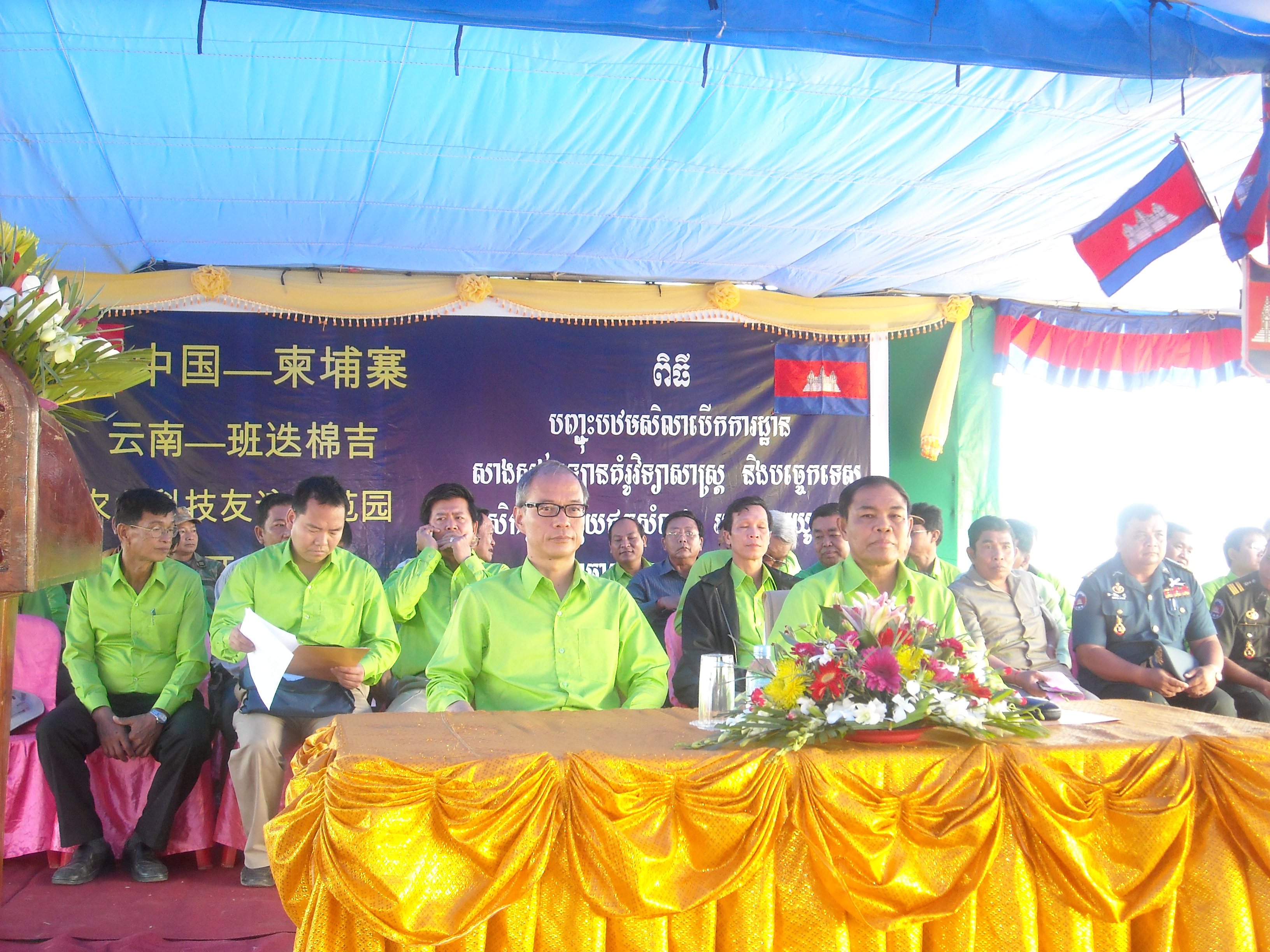 在开工仪式上,马莱县县长介绍了当地农业的基本情况;中方代表杨东云处长作了发言,简要介绍了示范园项目建设的宗旨、规模及建成后将发挥的作用;最后班迭棉吉省翁恩省长阁下作了热情洋溢的发言,省长阁下向与会者详细介绍了云南省与班迭棉吉省建立友好关系的过程,对中华人民共和国云南省人民政府给以班省的无偿援助,对项目负责单位云南省农业厅及项目实施单位beat365在线唯一官网表示衷心的感谢,并预祝“中国云南—柬埔寨班迭棉吉农业科技友谊示范园”建设项目顺利按期完工。