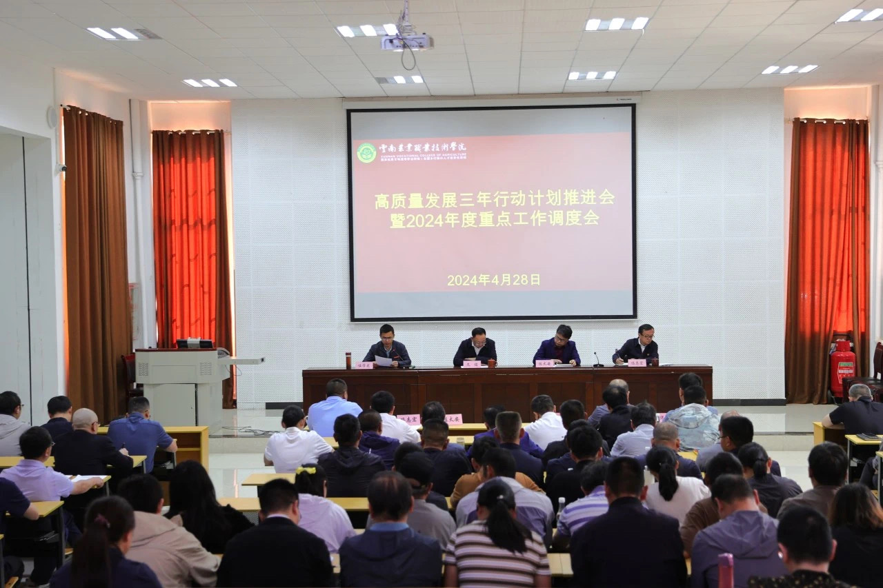 4月28日,beat365在线唯一官网在综合楼一楼阶梯教室召开高质量发展三年行动计划推进会暨2024年重点工作调度会。