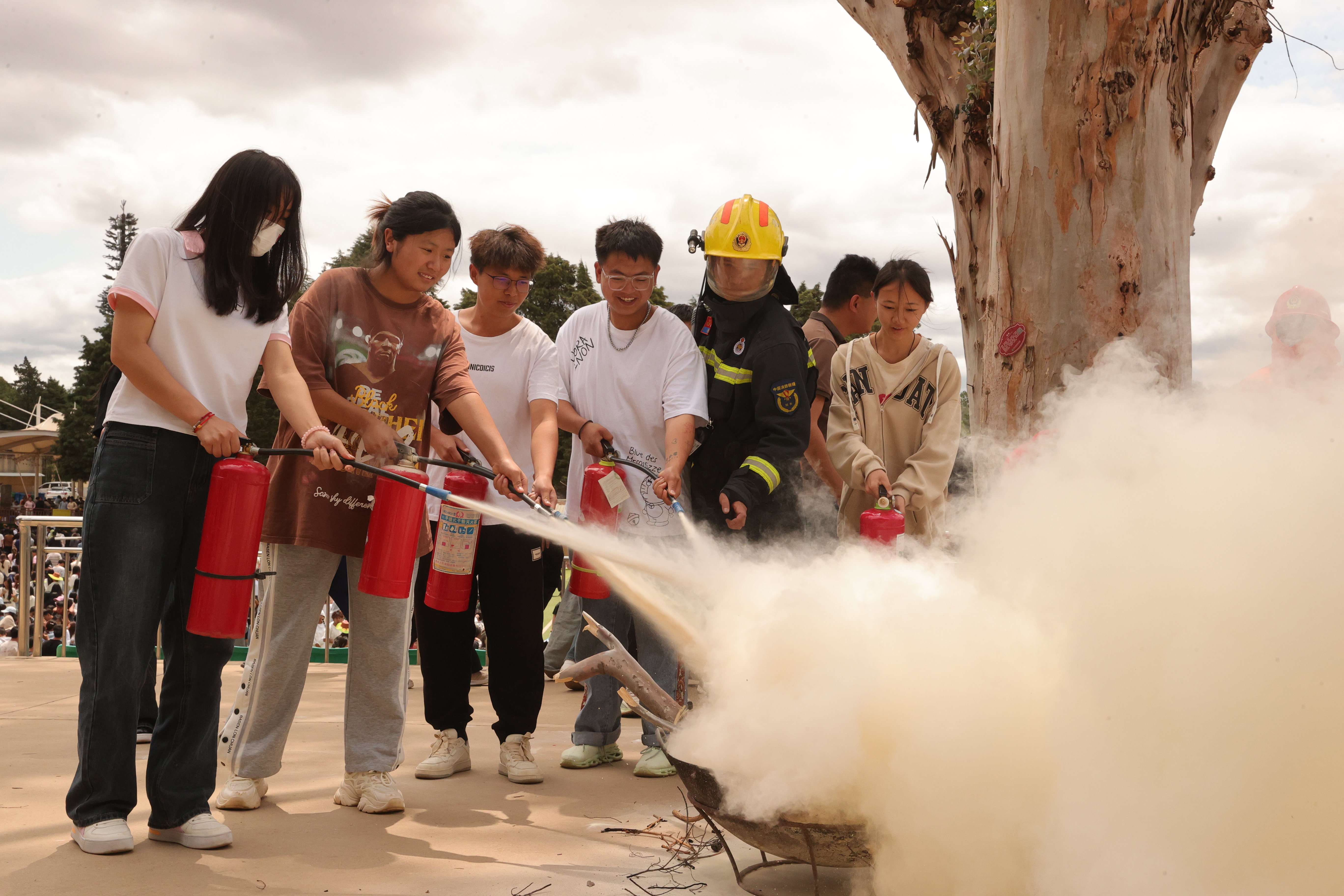 最后,周沫向学院师生讲解了灭火器的正确使用方法,在校师生实操练习,进一步掌握灭火器灭火的相关操作要领,强化减灾意识。