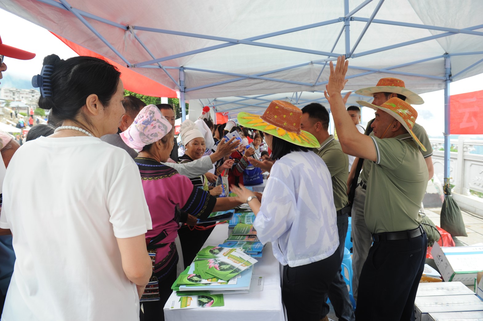服务队为老乡免费发放农用物资和农业技术图书
