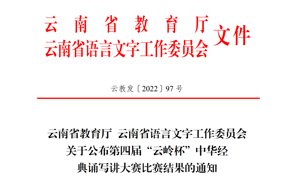 我院师生在第四届“云岭杯”中华经典诵写讲大赛中获奖