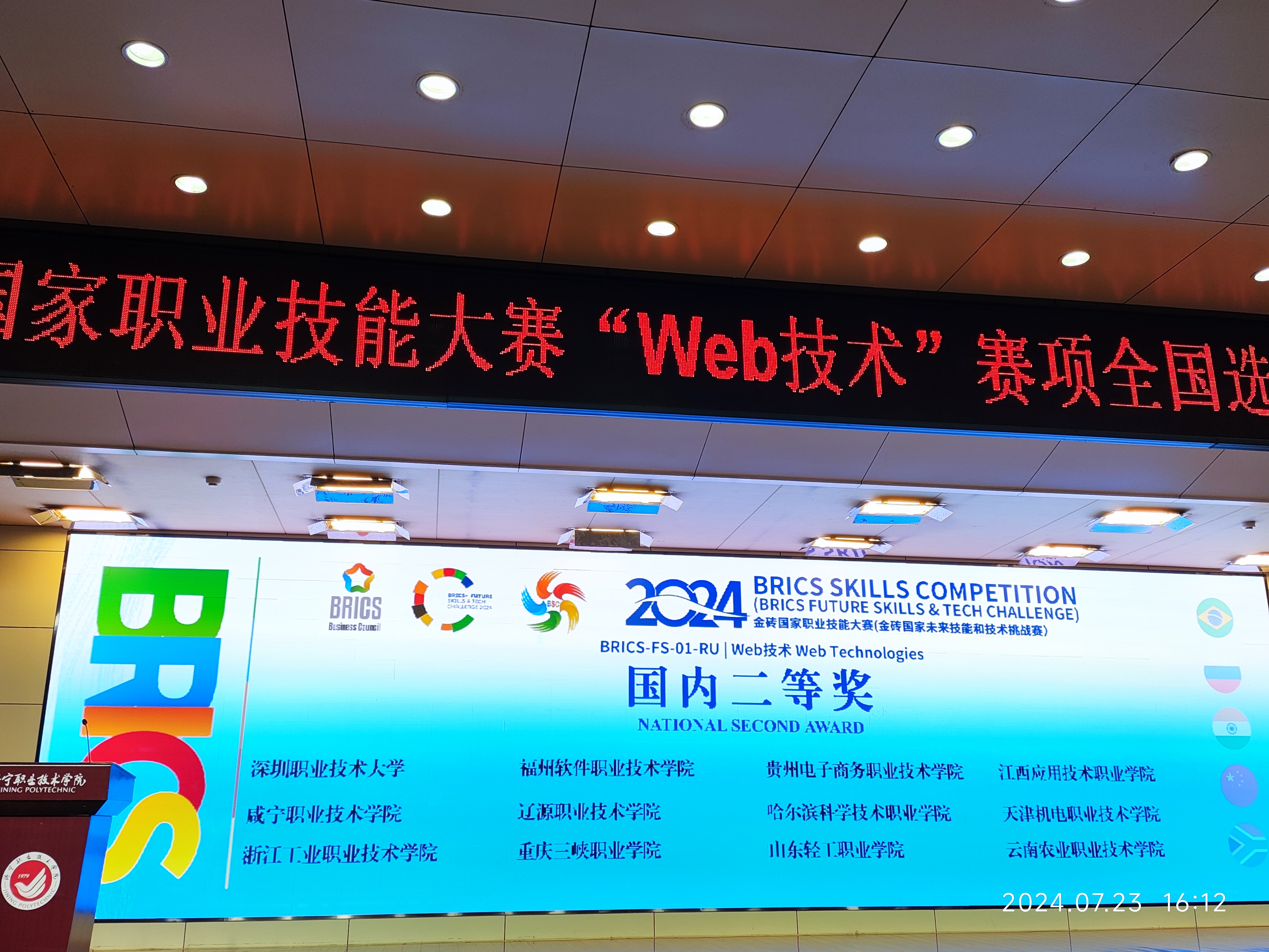 通知中心7月23日,2024年金砖国家职业技能大赛“Web技术赛项”全国选拔赛暨国内决赛在济宁职业技术学院圆满落幕。来自全国28个省、市、自治区的49支参赛队伍经过激烈角逐,beat365官网互联网技术学院参赛选手赵垚鑫凭借扎实的专业技能和出色的表现,荣获国赛二等奖,为学院和云南职业教育赢得了荣誉,也彰显了学院在软件开发技术教学方面的丰硕成果。