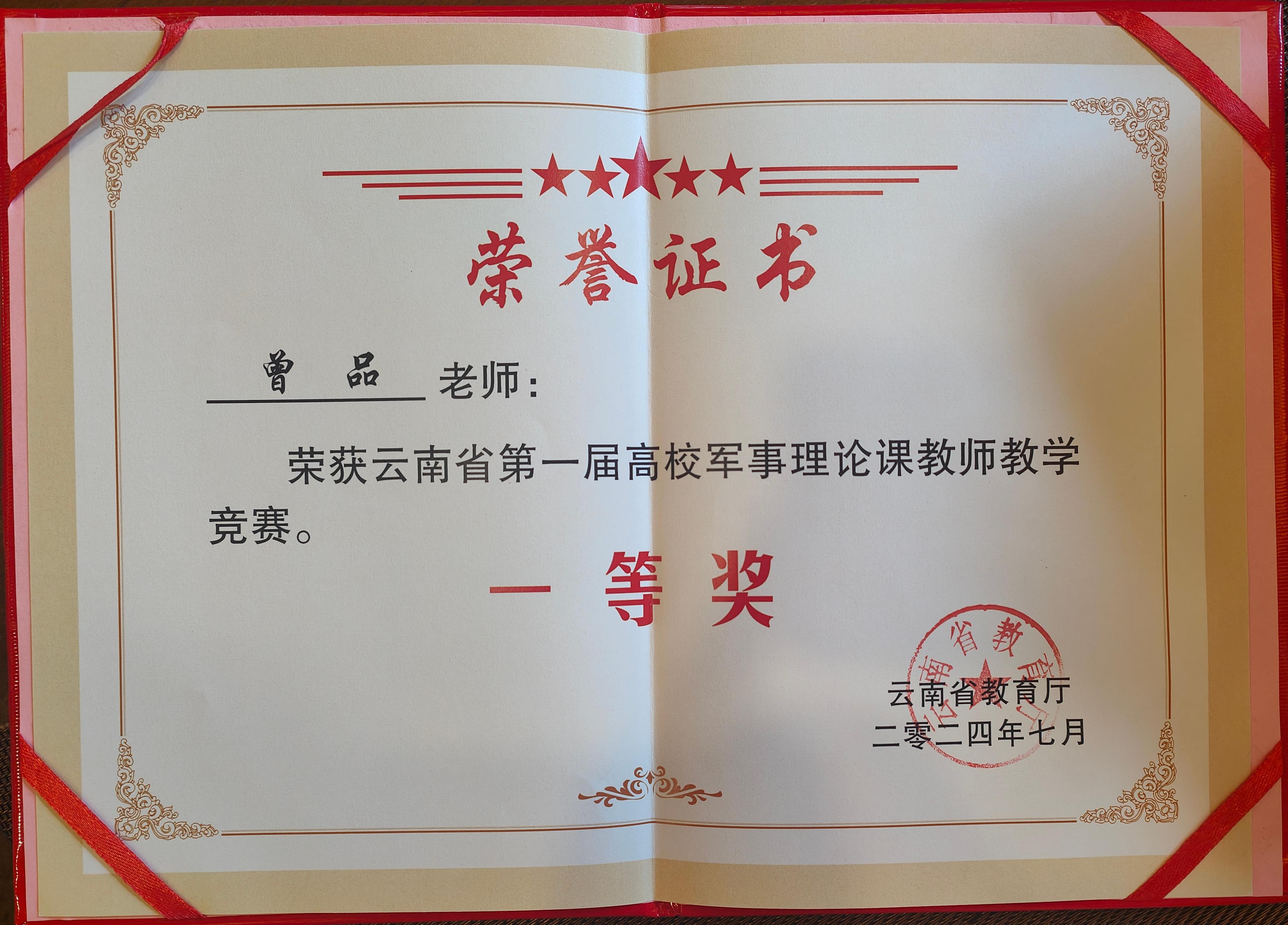 通知中心7月16日,云南省第一届高校军事理论课教学竞赛决赛在云南工商学院举办,共有48所高校参加竞赛。经过专家评审,10所高校选派的选手进入现场决赛。我院武装部副部长曾品老师以《毛泽东人民战争战略战术思想》为题,分别从战略战术、战史战例进行讲解,深刻阐述了毛泽东人民战争战略战术思想精华及其实用价值,最终成绩95.91分,总分排名第二,荣获一等奖。