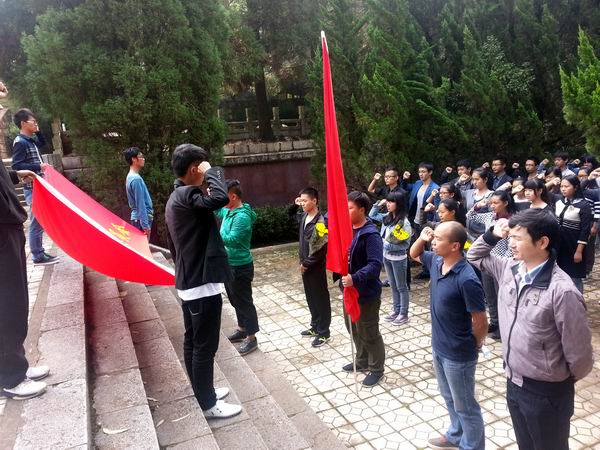 2014年8月31日第十二届全国人民代表大会常务委员会第十次会议决定将9月30日设立为烈士纪念日。为贯彻落实中央有关文件及《共青团中央在青年中广泛开展“庆祝新中国65华诞青春践行社会主义核心价值观”主题活动的通知》精神,引导大学生缅怀烈士功绩、弘扬烈士精神,培养大学生的爱国主义、集体主义精神和社会主义道德风尚,培育和践行社会主义核心价值观,beat365在线唯一官网共青团在昆明北郊黑龙潭公园开展纪念王德三烈士活动。参加活动的有院团委副书记何桥和团委老师们,以及学校青年团员代表。