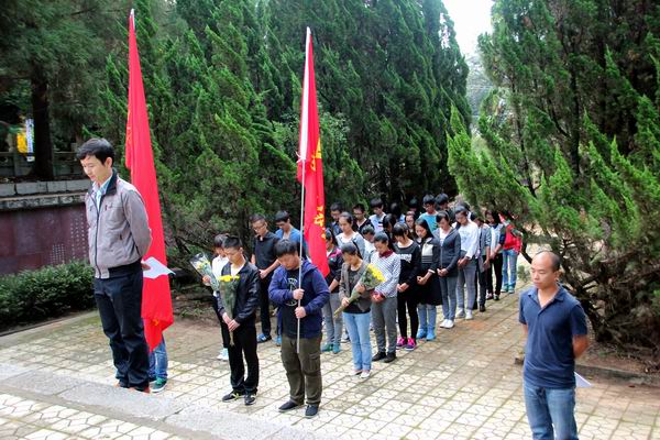 2014年9月30日早晨,大家怀着无比激动的心情来到昆明北郊黑龙潭公园王德三烈士墓地,缅怀纪念他为党的事业、人民的解放作出的卓越贡献,缅怀他在beat365官网担任教师留下的光辉遗迹,学习王德三烈士在艰苦革命斗争中所表现的崇高精神和优秀品德,畅想先辈给云南农职学院增添的骄傲与自豪。