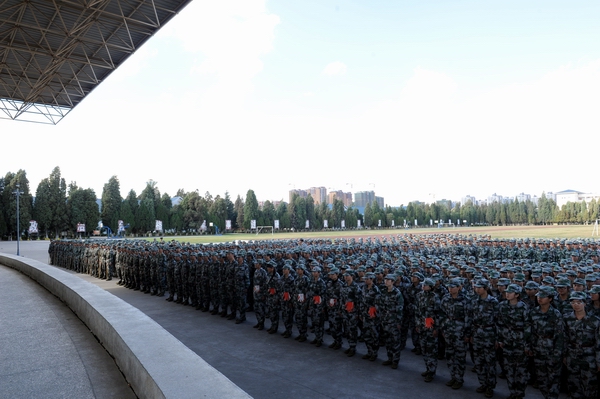 崔书记鼓励军训新生坚持到底