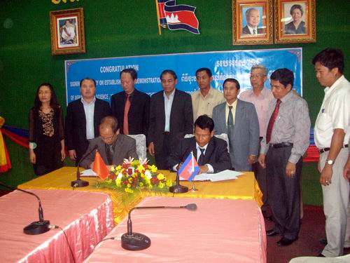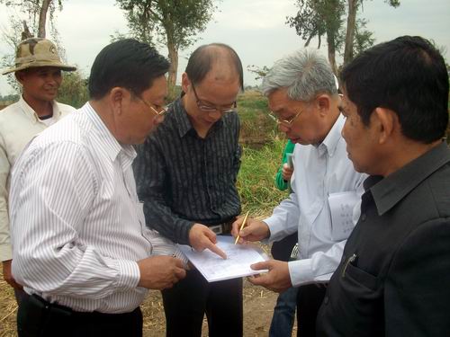 根据学院的部署,我院后勤管理处处长、基建办主任杨东云、生物工程系主任王孟宇、园艺与园林工程系主任唐世凯和基础部副主任李憬一行四人于2012年1月13日至21日赴柬埔寨就示范园建设有关事宜进行了实地考察和具体磋商,并与班省农业厅签订了《示范园合作会谈纪要》。《纪要》确定了在班迭棉吉省马莱县桑特费普镇坡罗村建设面积为10公顷的示范园,在示范园开展我国粮食和园艺作物新品种与新技术展示、试验、示范,通过新品种、新技术推广和农业技术培训等,提高当地粮食面积单产量,带动周边农业增效、农民增收、农村发展。