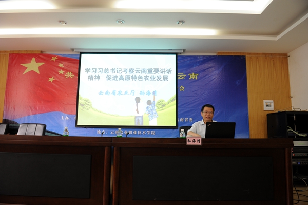 宣讲报告会上,孙副厅长作了题为《深入学习习近平总书记考察云南时的重要讲话精神,促进云南高原特色农业发展》的报告。他从习近平总书记考察云南时的重要讲话精神、云南高原特色农业的发展现状与未来和新形势下农业科研教育的机遇和挑战三个方面的内容紧密联系云南南高原特色农业的发展,进行了深入浅出、生动形象的阐述。报告全面而系统,生动而实在,剖析深刻,紧密结合实际。