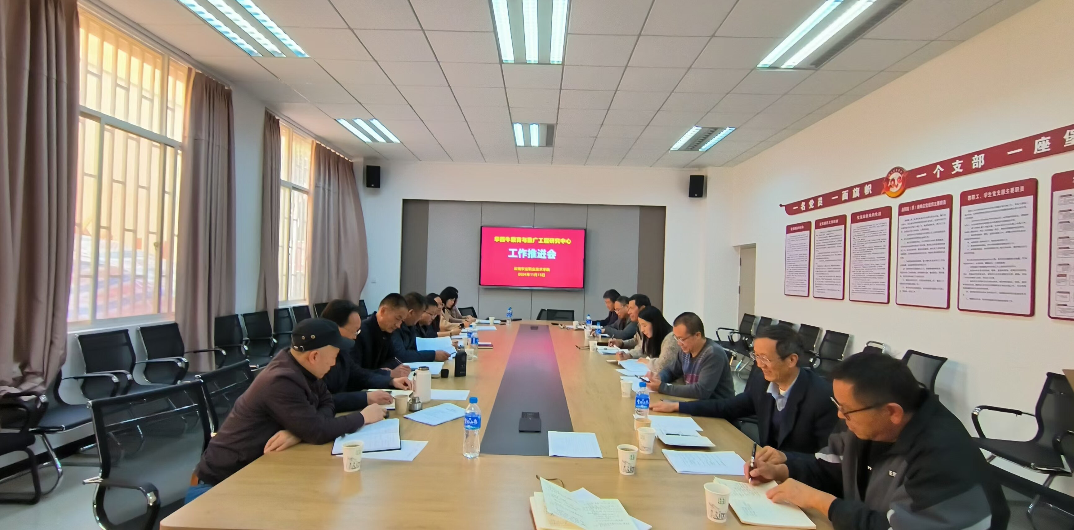 11月15日下午,学校组织召开华西牛繁育与推广工程研究中心工作推进会,调度2024年工程中心建设进度情况,对2025年工程中心建设重点工作进行再安排和再部署。学校副校长,项目负责人苏华伟主持会议,“银龄计划”专家吴秋敏、刘小林、束剑华、肖文华受邀出席会议,项目组技术骨干成员、计划培养专业骨干年轻教师,有关规程制定顾问专家、省农标委秘书处负责人参加会议。