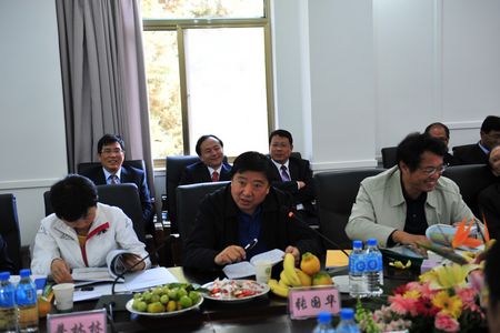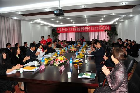 会议由党委书记崔金赋主持,他首先感谢在座的领导和专家组莅临我院进行检查指导。农业厅厅长张玉明作重要讲话,张厅长表示农业厅对我院申报省级示范性高职院校非常重视,对我院改革发展予以大力支持,并指出通过省级示范性高职院校的评审进一步促进农职学院的发展,希望学院抓住这难得的机遇,全面提升办学实力和办学水平。