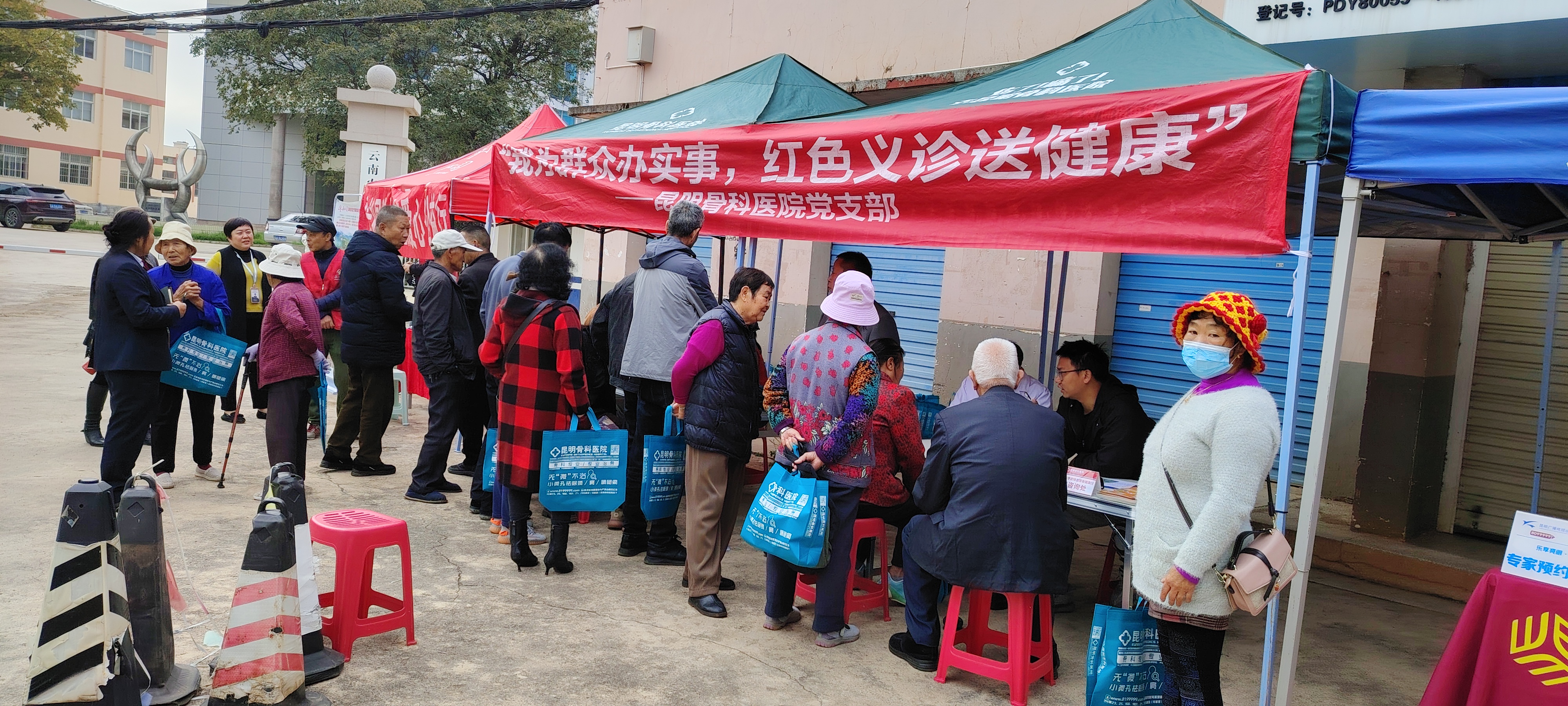 11月6日上午,结合敬老月活动,昆明骨科医院北院区骨病筛查专家组,在小哨校区场部办公楼前开展颈肩腰腿痛、椎间盘突出、关节炎等骨病的免费义诊及测血糖、测血压筛查活动,有适应症的离退休老同志们在现场免费参与骨病问诊、理疗等体验项目,部分老同志们还携带已有的片子到现场请专家参考诊疗。