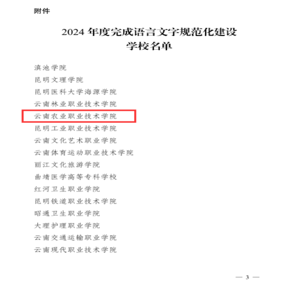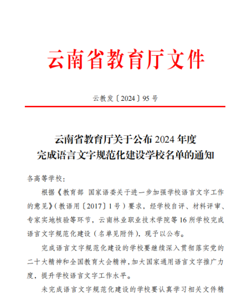 通知中心近期,云南省教育厅公布了2024年度完成语言文字规范化建设学校的名单,经过学校自评、材料评审、专家实地核验等程序,beat365官网已达到语言文字工作规范化建设标准,获评云南省语言文字规范化建设达标学校。