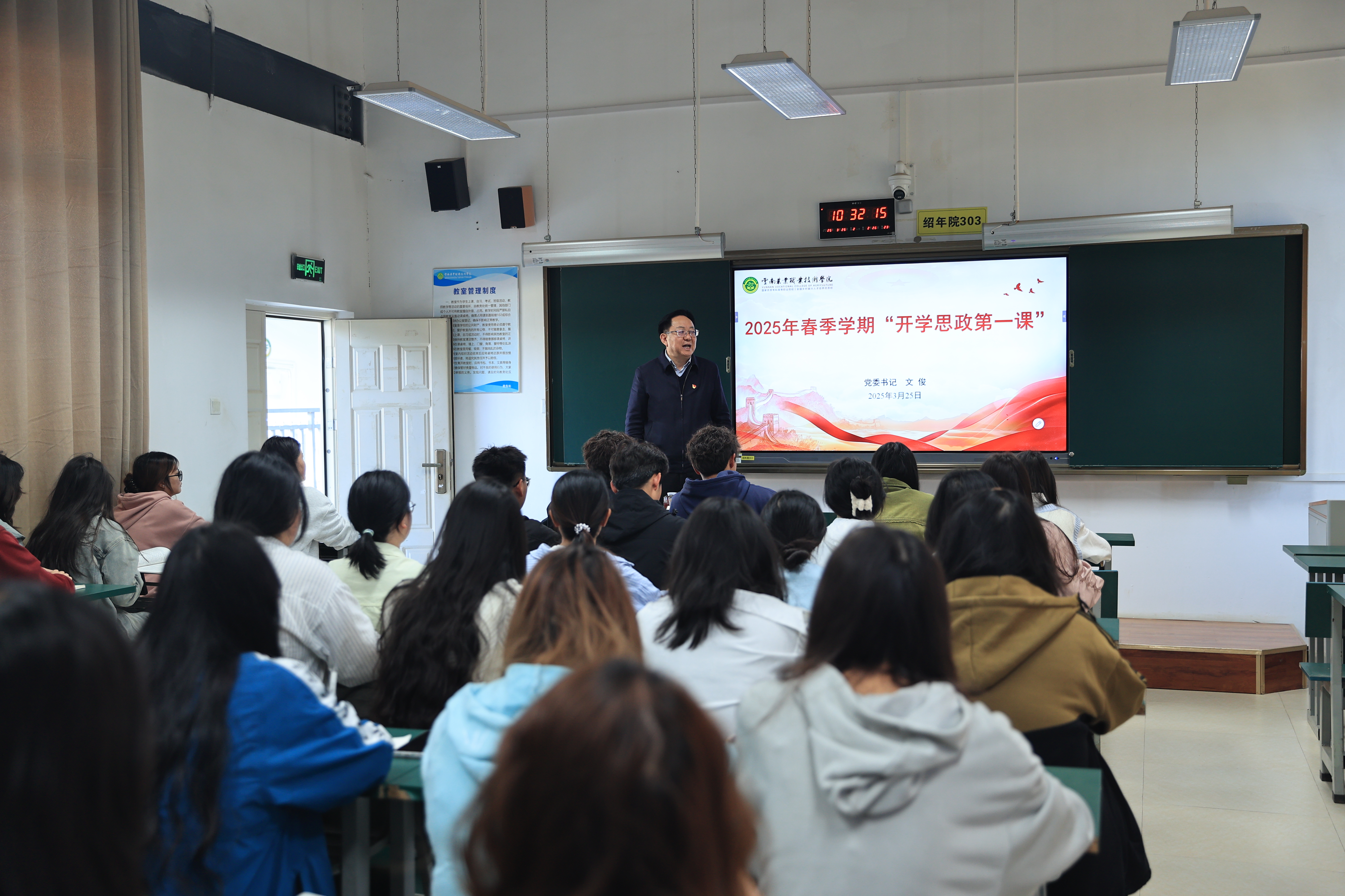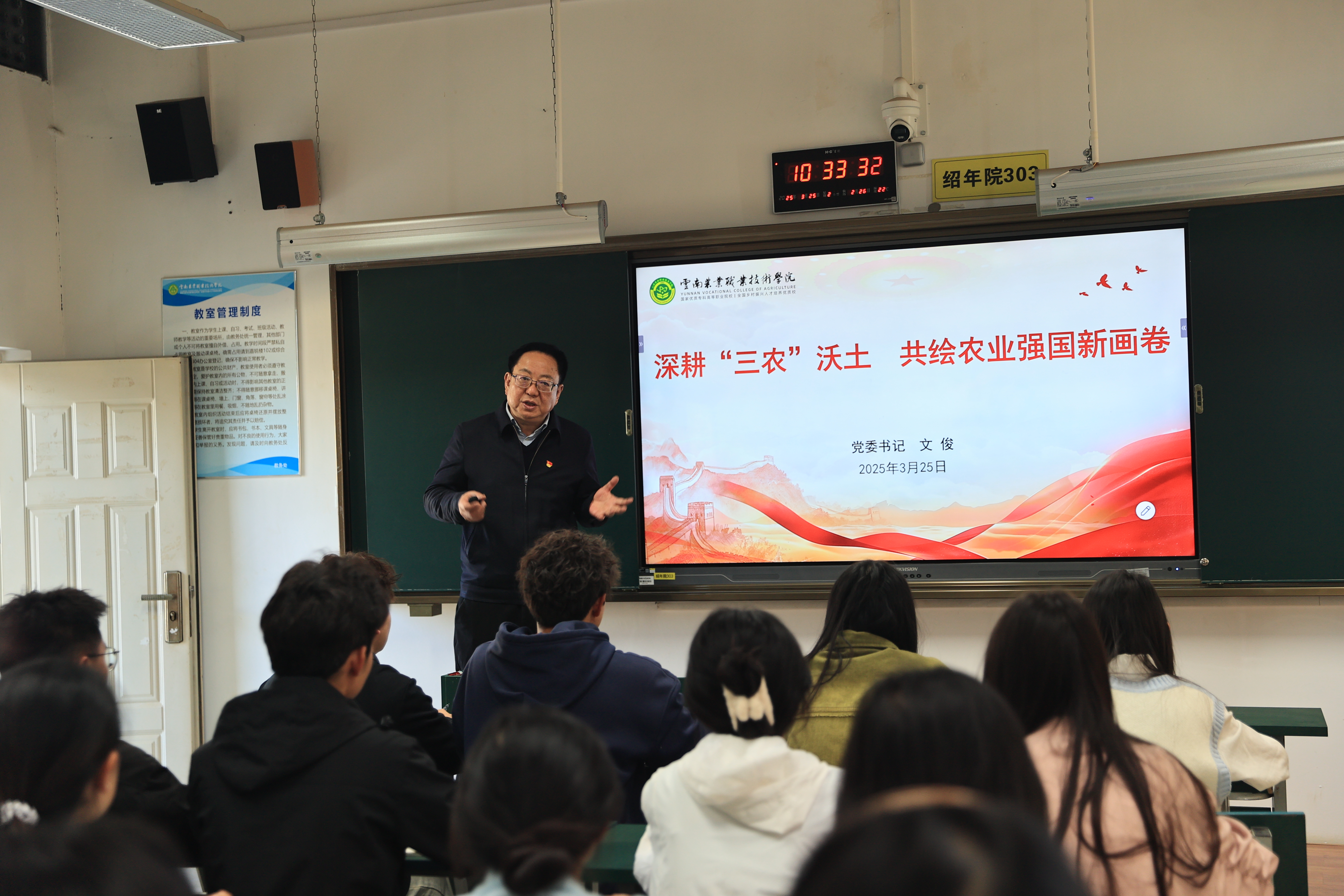 通知中心3月25日上午,学校党委书记文俊在小哨校区绍年院303教室,以“深耕‘三农’沃土 共绘农业强国新画卷”为主题,为同学们讲授“开学思政第一课”,通过政策解读、案例剖析与互动交流,引导青年学子将个人理想融入乡村振兴国家战略。