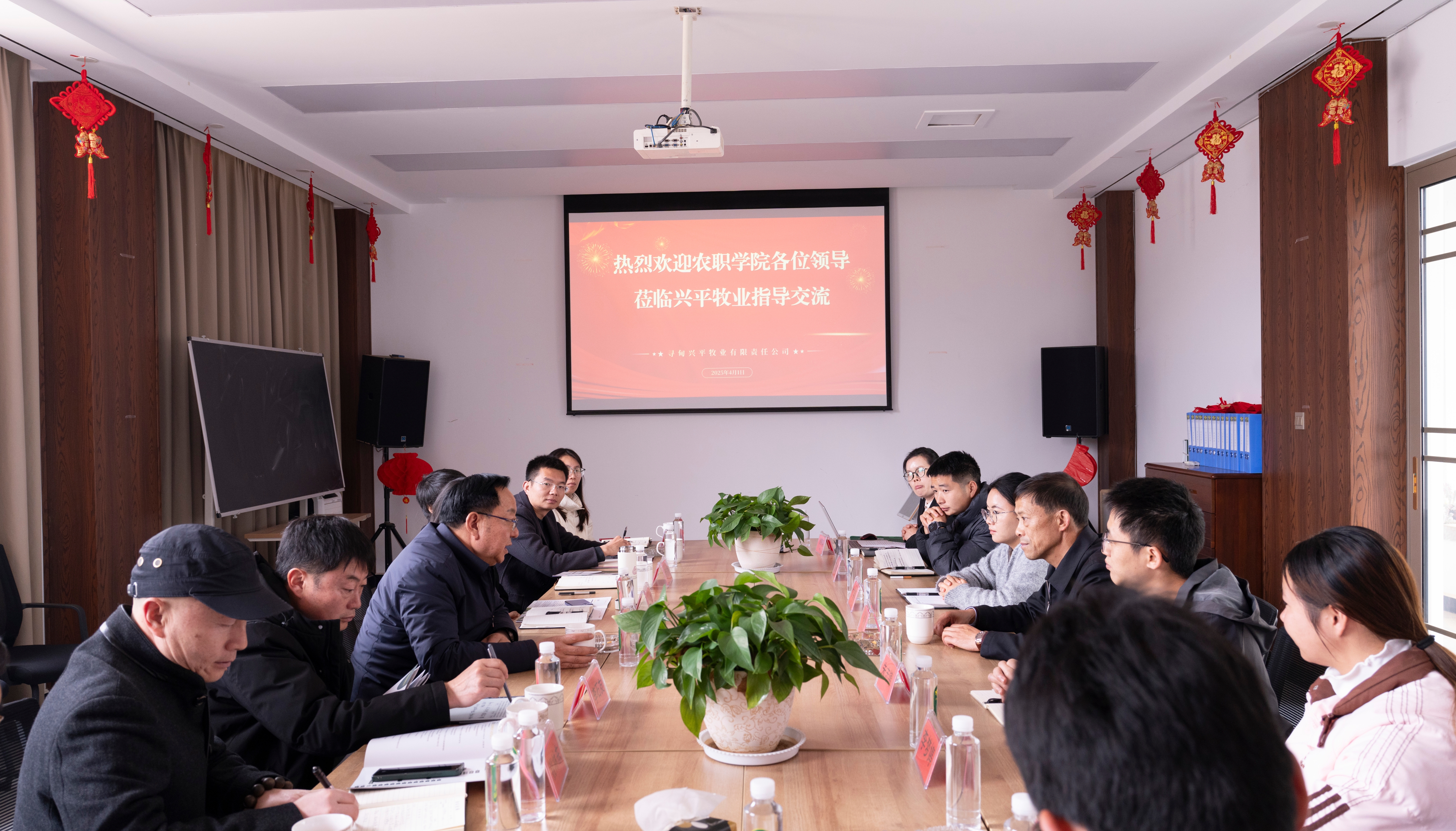 文俊书记表示,学校始终以服务地方产业为导向,培养高素质技术技能人才。他强调,校企合作是职业教育的生命线,双方需进一步深化“双向奔赴”,推动教育链、人才链与产业链深度融合。文书记提出将优化人才培养方案,围绕企业需求增设育种技术、疫病防控和智能养殖等模块化课程,并建立毕业生职业发展跟踪机制,持续改进优化培养方案和教学质量。