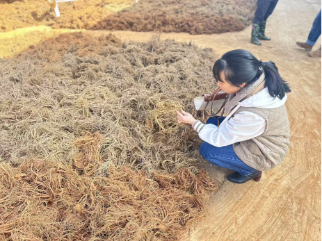 在中药材采收季,禄劝的中药材基地一片繁忙。方其仙老师扎根当归种植基地与加工车间,针对部分当归因采收存放不当、晾晒翻动不均导致霉变的问题,现场示范“薄摊勤翻”的操作方法,有效提升成品优质率,保障药材品质。李茜老师则聚焦优化当归产地加工工艺,针对传统自然晾晒效率低、品质不均等痛点,提出引进分段控温干燥设备的建议,前期40 — 45℃低温慢烘保留有效成分,后期50 — 55℃加速干燥,还增设振动筛分机实现等级分类,并指导建立关键指标检测体系,推动企业向标准化生产转型。
