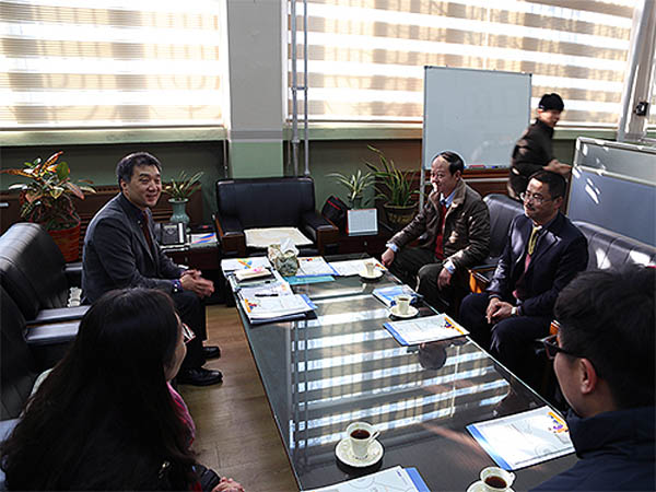 1月23日上午9:30—10:00,访问团一行在江原大学国际交流处与Sae-Youn Cho处长进行了交流,双方主要介绍了彼此的情况,对一些重点问题进行了磋商。